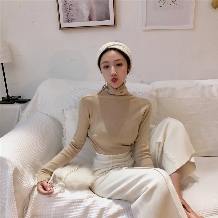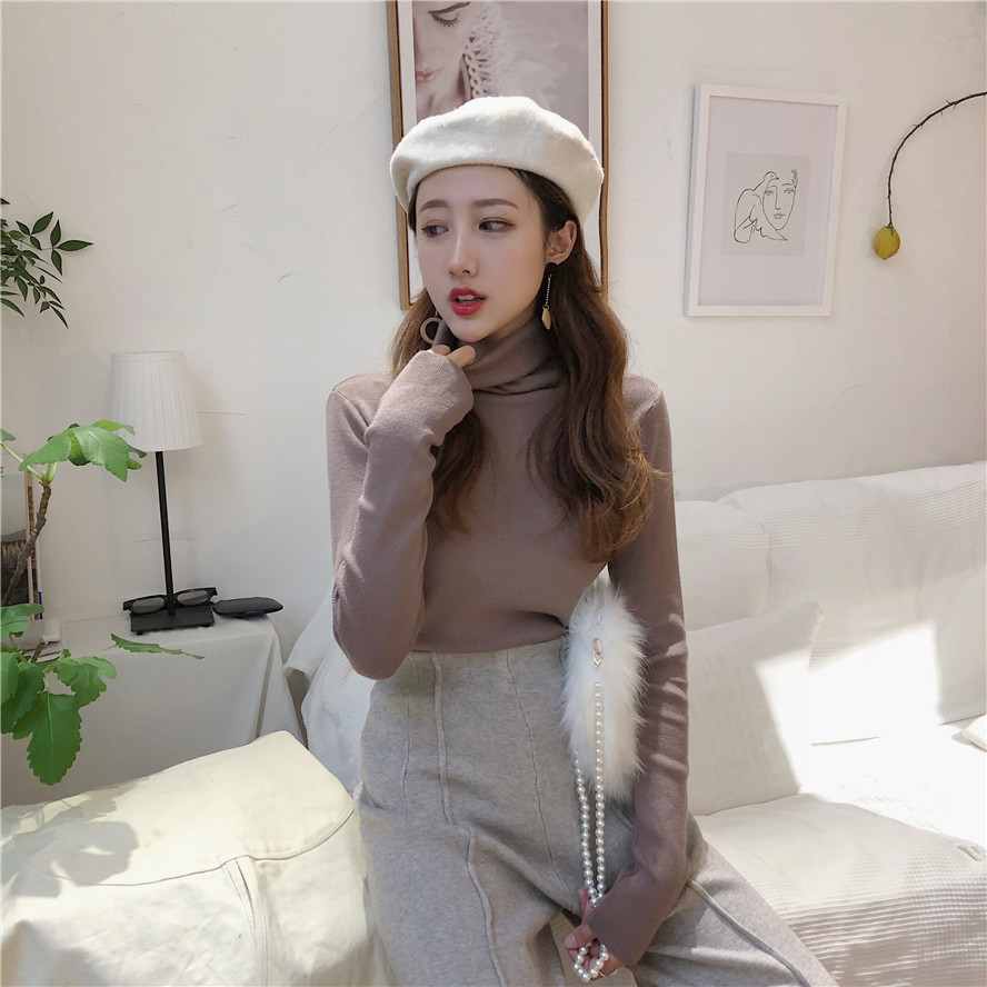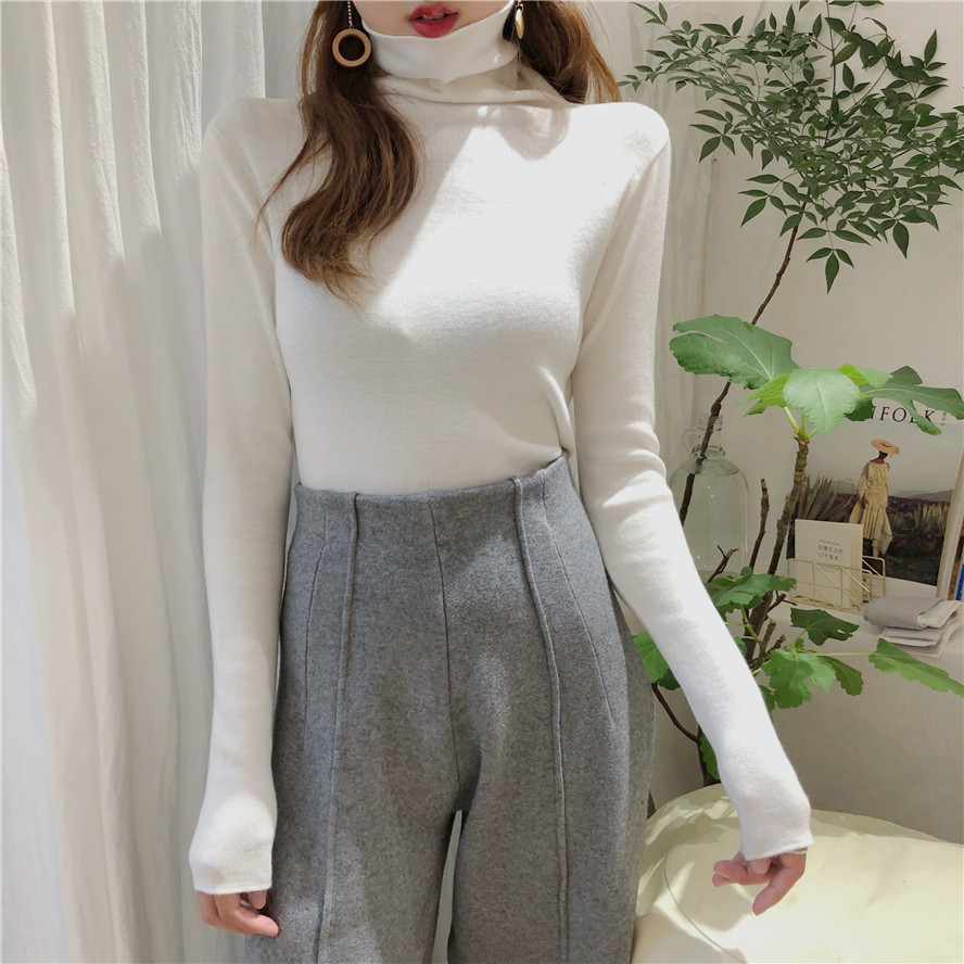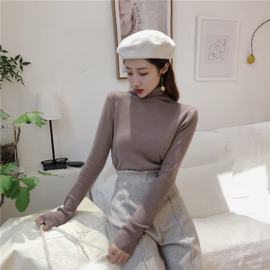 4 цвета, осенняя Женская водолазка с длинным рукавом, тонкий вязаный тонкий свитер, топы, женские корейские облегающие повседневные рубашки
