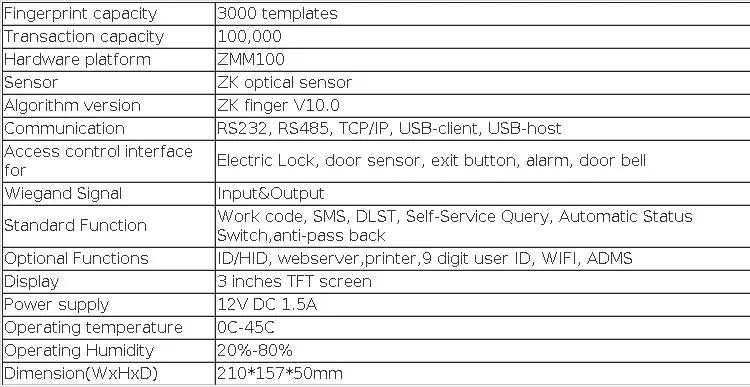 XM100 является инновационным Биометрическим считывателем отпечатков пальцев для приложений посещаемости времени, поддерживает optinal ADMS и wifi. Xm100 имеет самый модный алгоритм сопоставления отпечатков пальцев на коммерческой основе и высокопроизводительный оптический датчик отпечатков пальцев ZK с высоким качеством изображения. 3 "TFT может ярко отображать больше информации, включая качество изображения отпечатка пальца и рептикатин restult и т. Д. TCP/IP связь является стандартной и убедитесь, что передача данных между терминалом и ПК может быть легко сделана в течение нескольких секунд.