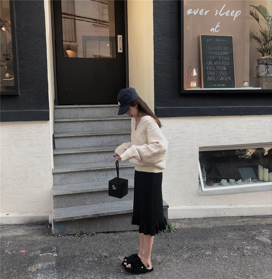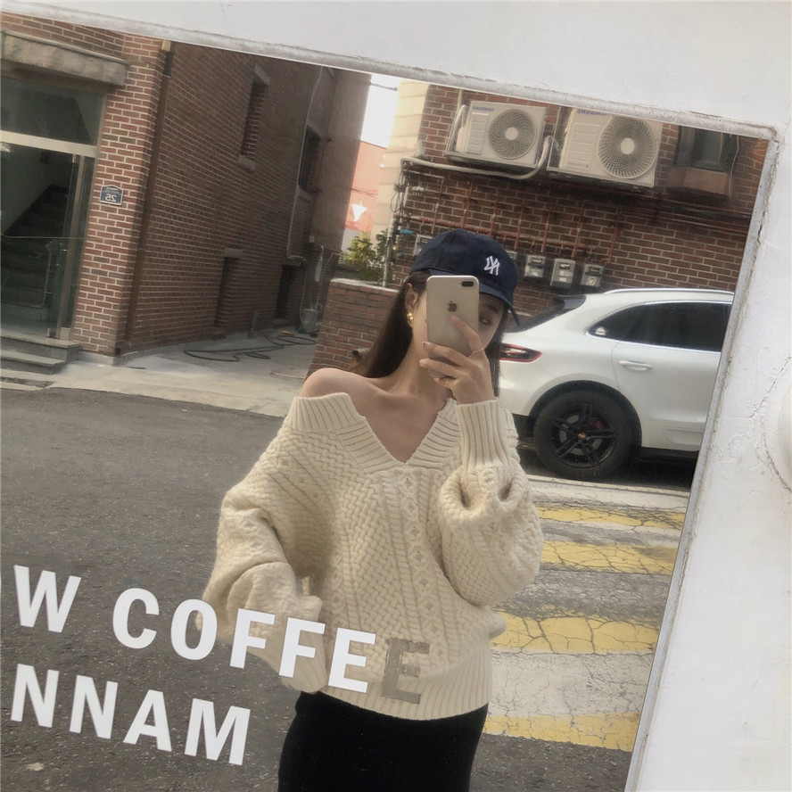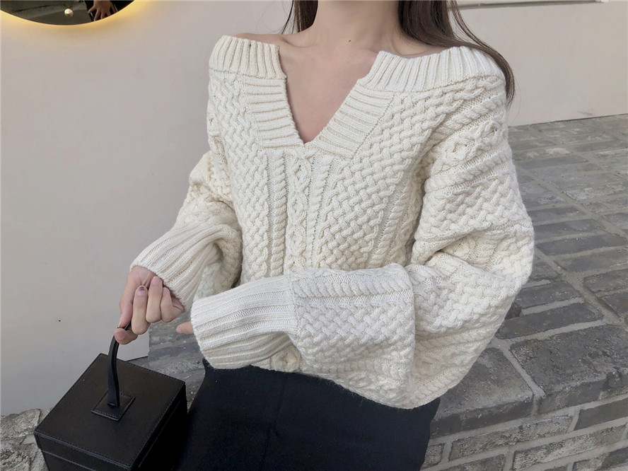 2018 осень и зима корейский стиль V образным вырезом сплошной цвет трикотажные теплые свитеры для женщин женские свитеры и пуловеры