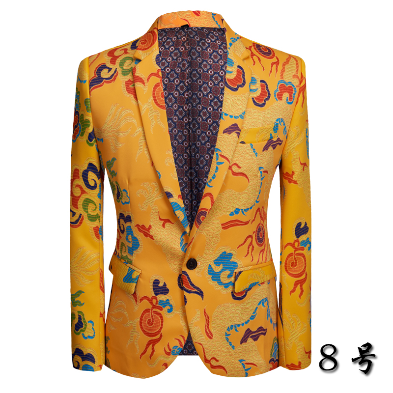 Пиджак PYJTRL мужской с воротником шалью приталенный Блейзер бархатным цветочным