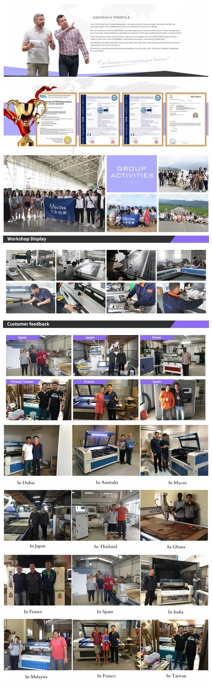 Jinan AccTek Machinery Co., Ltd находится в высокотехнологичной промышленной зоне Цзинань, которая специализируется на производстве чпу и лазерных машин с 2005 года.