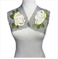 4pc/Lot Red 3D Ribbon Embroidery Patch Flower Embroidered Patches For Clothing Vintage Applique Clothes Parches Ropa Sew On 19x11cm AC1415