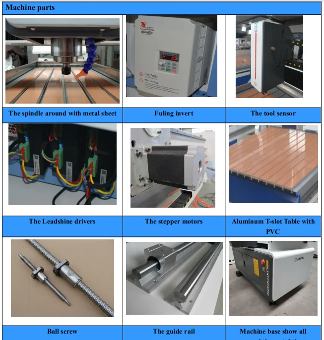 Дополнительные детали | 1, Hiwin линейный квадратный направляющий рельс 2, пылесборник 3. Поворотная ось для гравировки круглого дерева: цена зависит от его диаметра 4,2.2 кВт шпиндель водяного охлаждения 5, резервуар для воды для резки мягкого металла 6,Mach3 USB система управления |