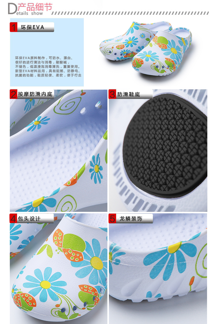 2017 модная медицинская обувь с цветочным принтом; шлепанцы для медицинских работников; хирургическая обувь; обувь для медсестер; медицинские аксессуары