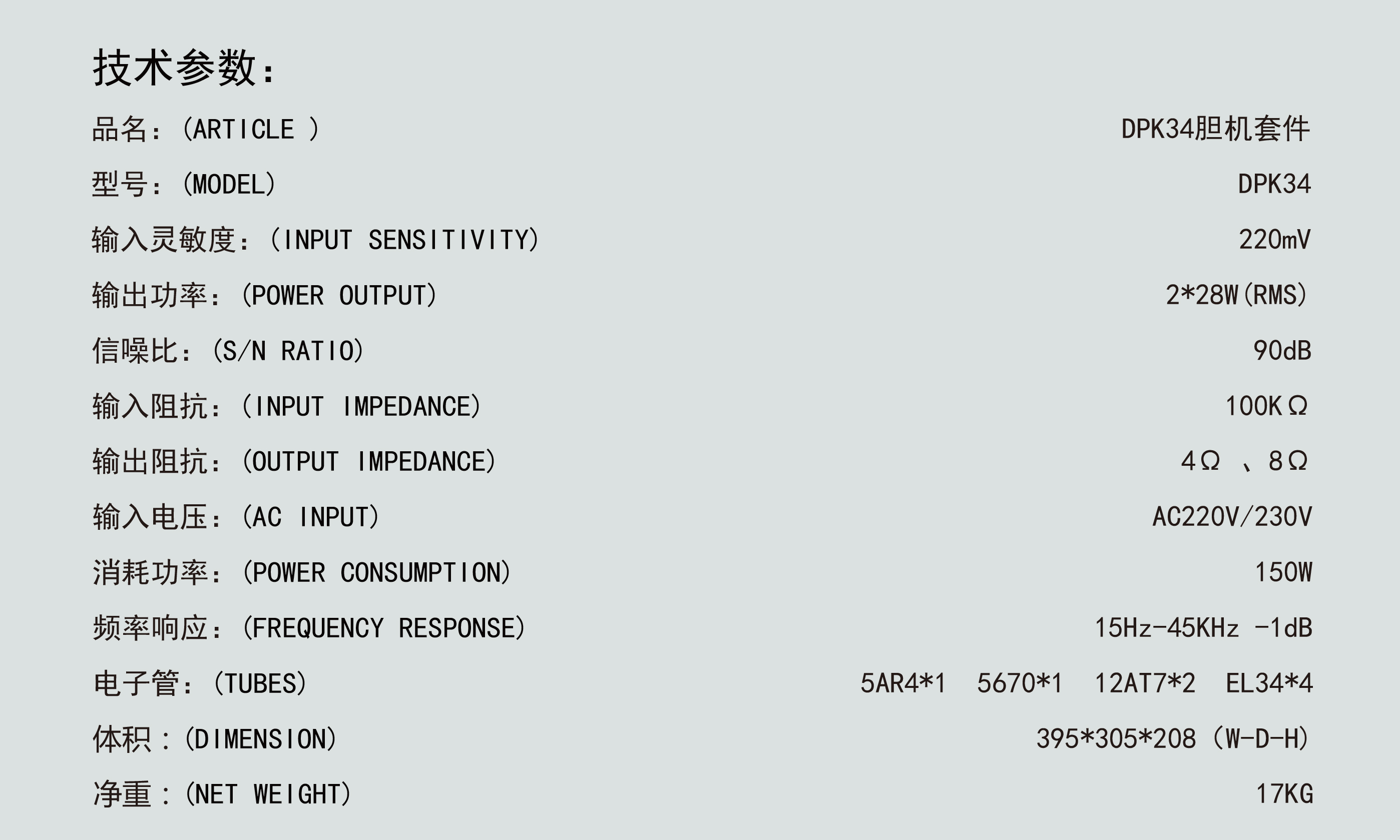 Новый EL34 трубка двухтактный комплект ламповых усилителей, имеет увеличенный размер чехол на основе оригинала, модернизировано питанием от источника питания крупного рогатого скота (290W) И размер (105 железное ядро), добро пожаловать на покупку! Этот продукт представляет собой комплект усилителей, то есть детали, используемые для сборки, на рисунке показано физическое изображение готовой продукции. Технические параметры: DPK34 amp набор Модель: DPK34 Входная чувствительность: 220 МВ Выходная мощность: 2*28 Вт (RMS) Отношение сигнал-шум: (S/N RAT10) 90 дБ Входное сопротивление: 100KQ Выходное сопротивление: 4 Ом, 8 Ом Частотная характеристика: 15hz-45khz-1 дБ Трубка: 5AR4*15670*112AT7*2EL34*4 Объем: 395*305*208(W-D-H) Вес нетто: 17k6
