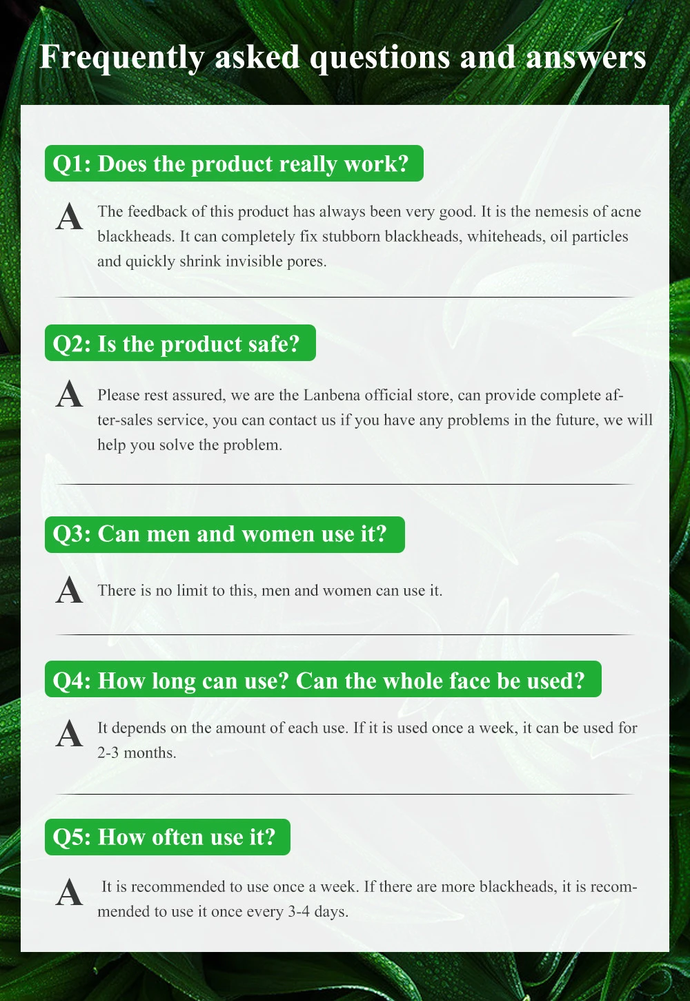 О: рекомендуется использовать один раз в неделю. Если есть больше черных точек, рекомендуется использовать их один раз в 3-4 дня.