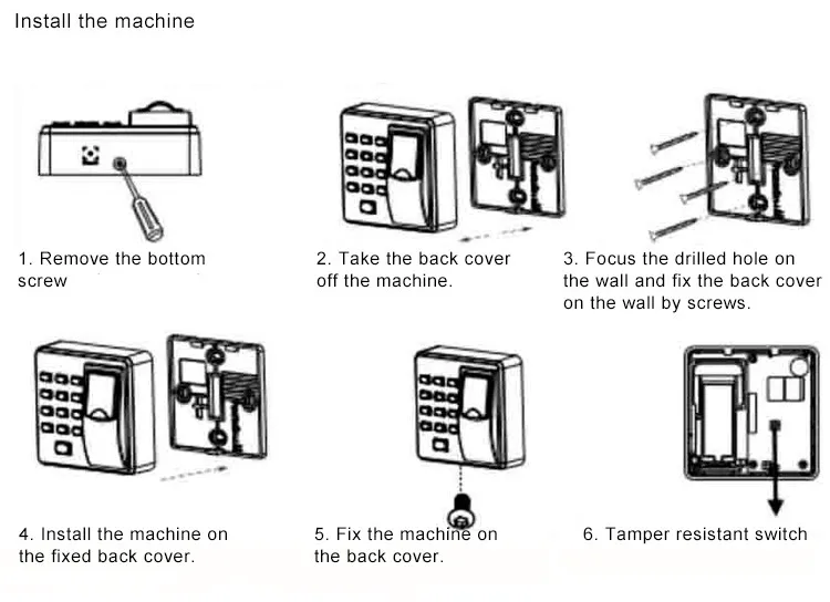 6. Поддерживает пароль и отпечаток пальца, чтобы открыть дверь, отпечаток пальца и автономную Емкость карты до 500