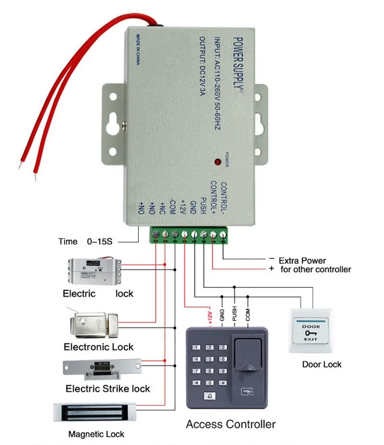 Интерфейс контроля доступа для | 3-й вечерние Электрический замок, датчик двери, кнопка выхода, сигнализация, дверной звонок |