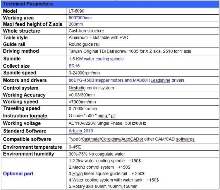 Шпиндель: 1.5кВт система водяного охлаждения (2.2 кВт/3.0квт)