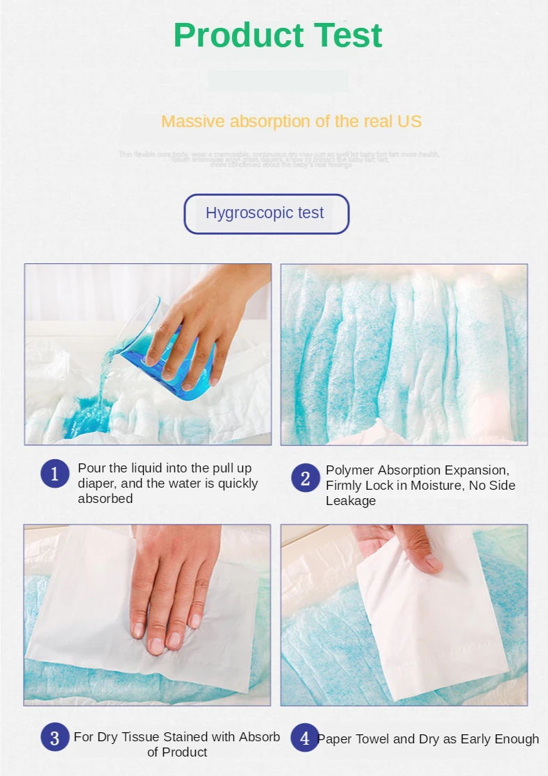 Характеристики: XL (XL) для среднего роста и слегка полных людей. Состав: Поверхность: нетканый материал. Поглощающий слой: абсорбирующая бумага/хлопковая древесная масса/полимерный абсорбент; Водонепроницаемый внешний слой: полиэтиленовая пленка против протечек. Особенности: 1. Он принимает полимерный поглотитель и пуху целлюлозы; Поглощающая структура имеет сильное поглощение! 2, может поглощать мочу и другие жидкости тела несколько раз, чтобы всегда держать поверхность подкладки сухой. 3, быстро впитывает экскременты и удаляет плохой запах, чтобы обеспечить свежий воздух в помещении. 4. Простой в использовании, экологически чистый.