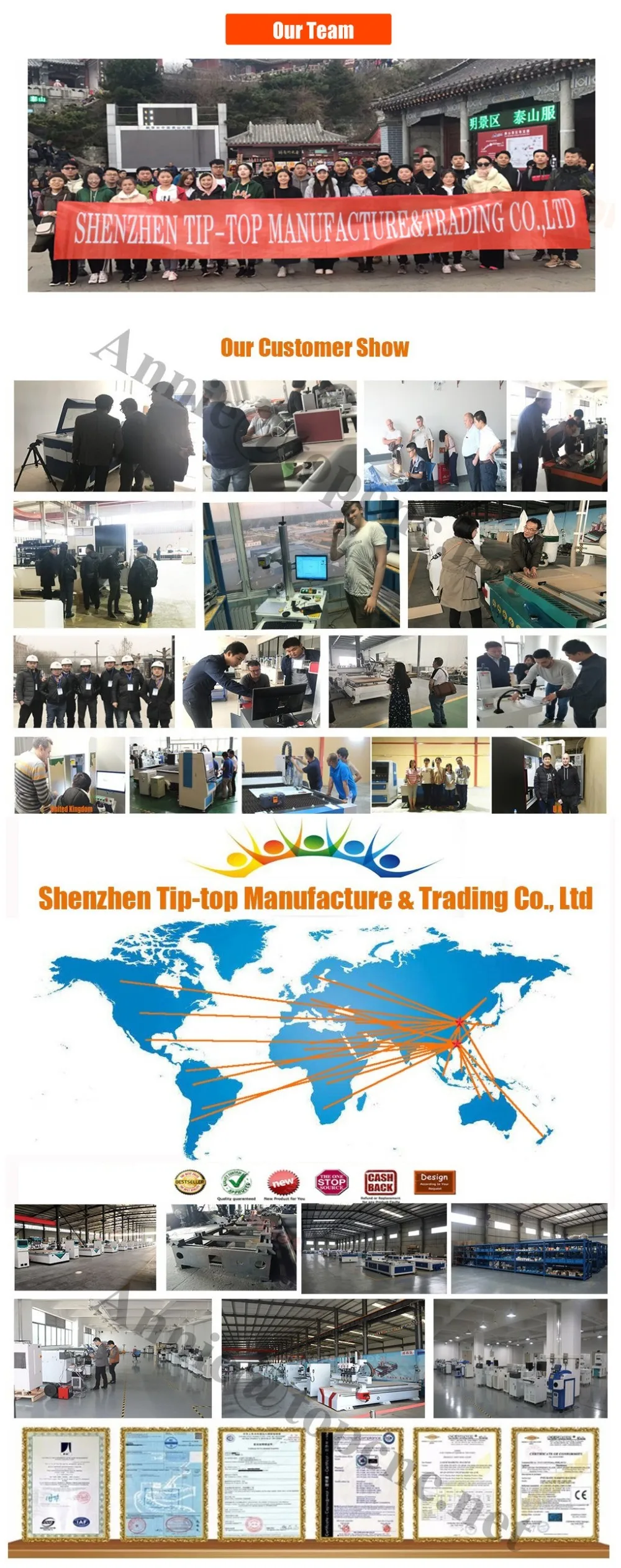 Shenzhen Tip-Top Manufacture & Trading Co., Ltd является филиалом компании с инженерами и исследованиями и разработками уже 16 лет. Это профессиональный производитель, занимающийся исследованиями, разработками, производством и обслуживанием волоконно-лазерной маркировочной машины. Станок для резки волокон, станок для маркировки волокон, фрезерный станок с ЧПУ, лазерный гравировальный станок, лазерный сварочный аппарат и станок для плазменной резки.