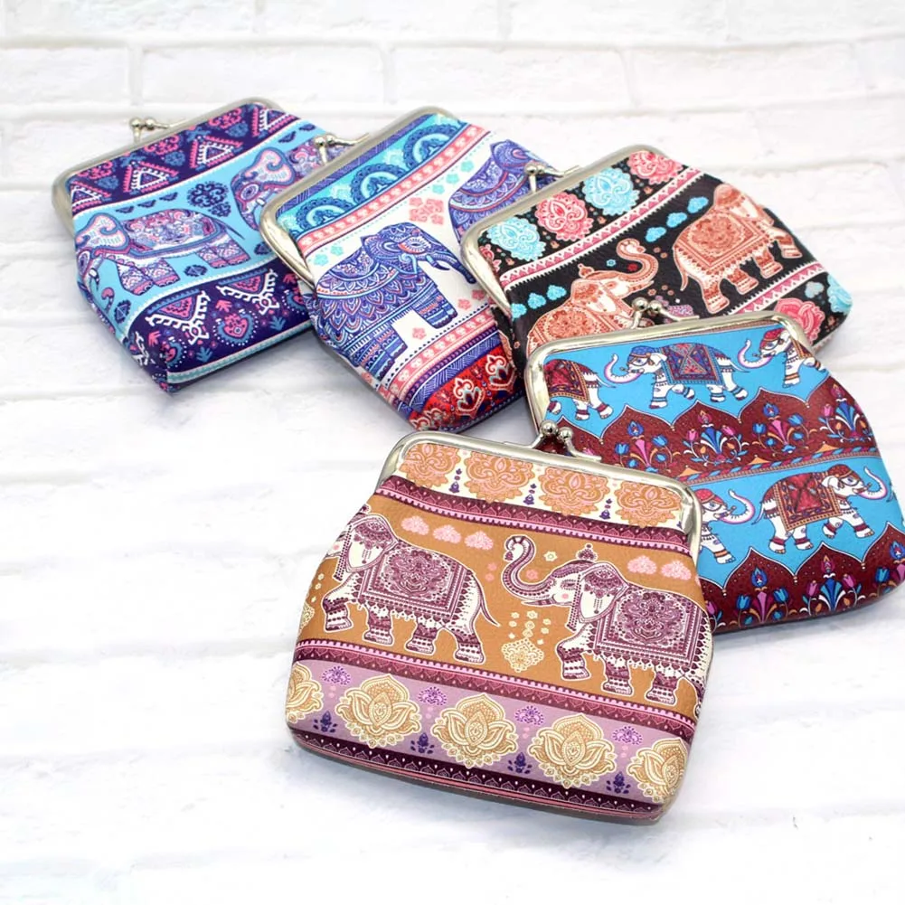 Этнический слон цветочный принт поцелуй замок мини-кошелек для монет женский кошелек, клатч сумка