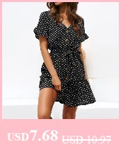 Женское модное Повседневное платье с коротким рукавом, платье трапециевидной формы в горошек с бантом, Пляжное платье с v-образным вырезом, женская одежда