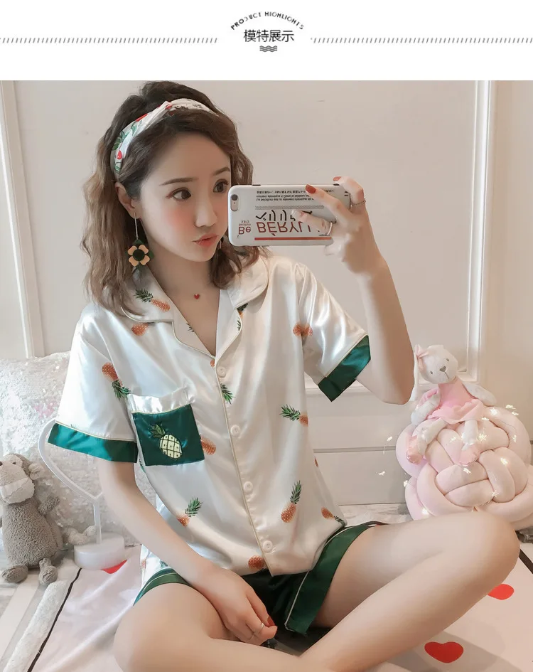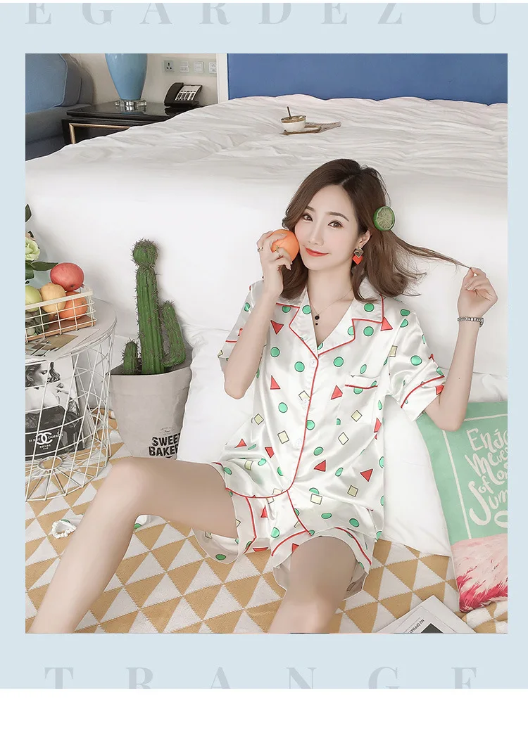 Женская шелковая пижама комплекты короткие пижамы с цветочным принтом роскошная