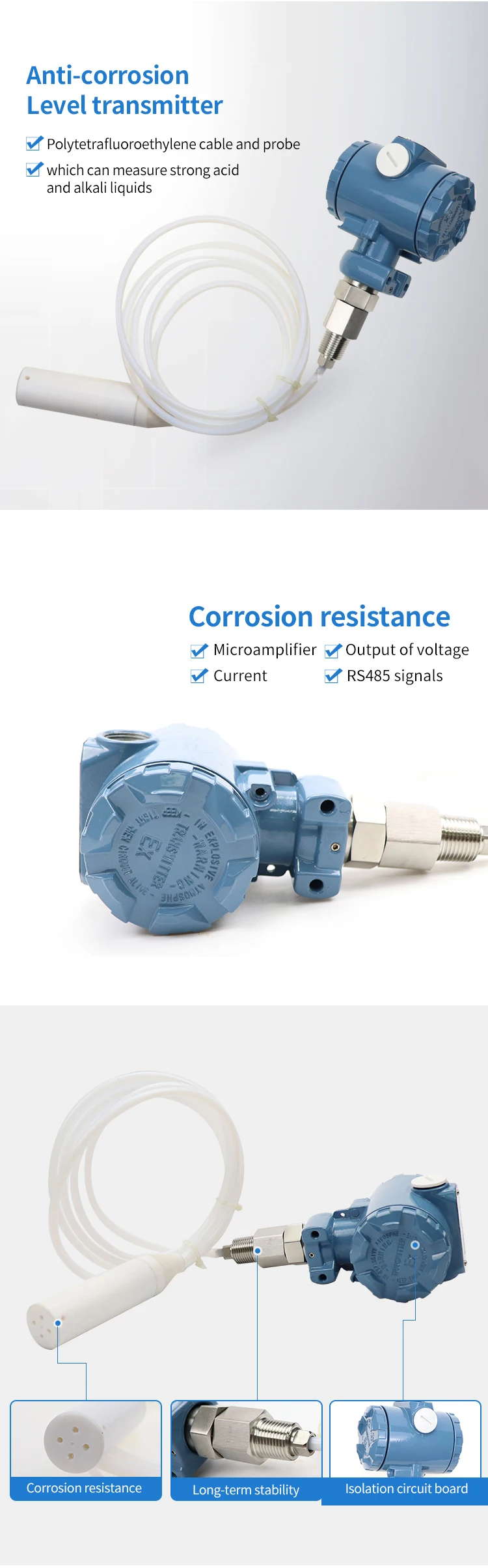 HDL604 антикоррозионный передатчик уровня жидкости принимает кабель PTFE, который может измерять сильные кислоты и щелочные жидкости. Передняя защитная крышка защищает диафрагму датчика. Он также может сделать жидкую контактную диафрагму плавно. Антикоррозийный провод запечатан с внешней оболочкой. Вентиляционная труба соединена с внешней внутренней частью кабеля, а внутренняя структура предназначена для предотвращения конденсации. Встроенная микросхема обработки сигнала используется для дистанционной передачи. Он имеет хорошую стабильность и надежность.