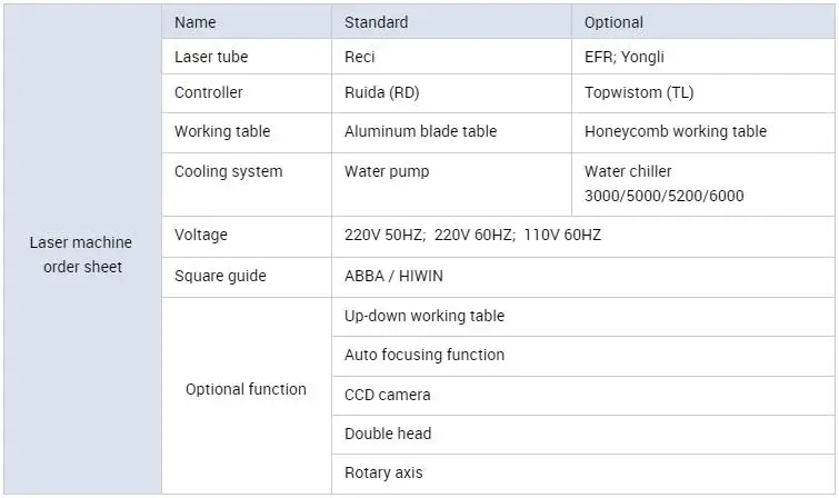 6 | Мощность лазера | 80 Вт/100 Вт/130 Вт/150 Вт/180 Вт |