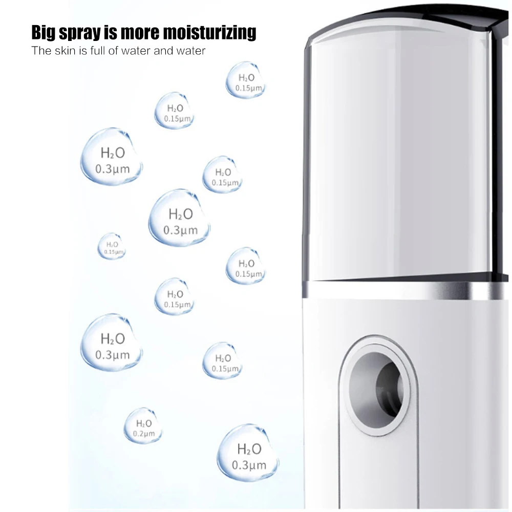 Хороший увлажняющий и освежающий мини-спрей для лица, 45 с пополнение глубокой воды, мини устройство для холодного тумана для лица использует нанотехнологию, ультразвуковые изменения молеады воды ионным распылителем тумана, кожа более легко впитывается, без капель. Увлажняет сухую кожу, идеально подходит для спа-процедур на кончиках пальцев, но не впитывается в лицо.