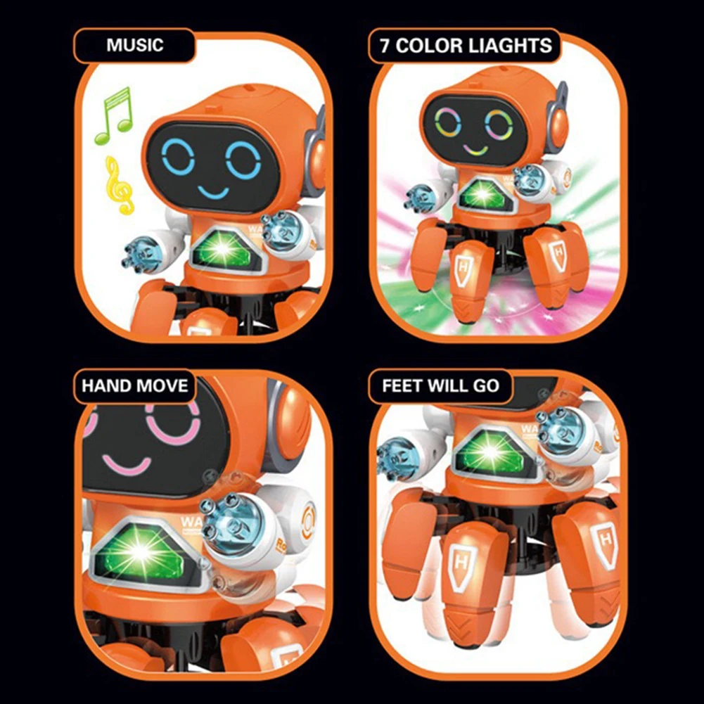 Милый 6-когтевой цветной светодиодный музыкальный танцевальный мини-робот, детская игрушка в подарок