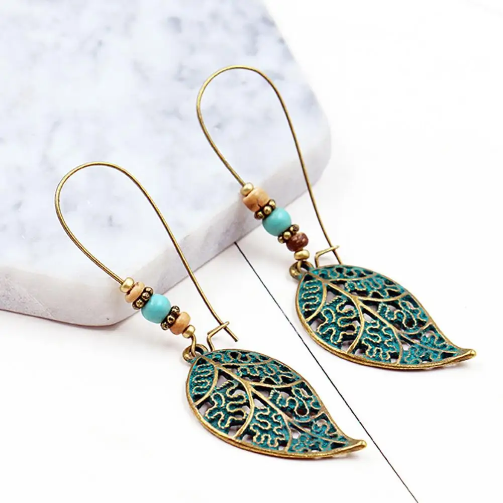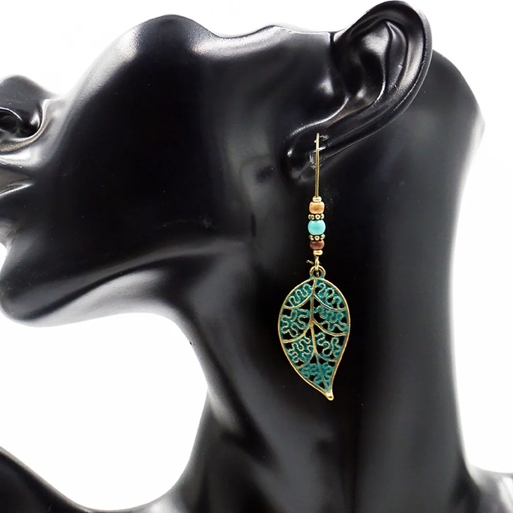 С искусственным бирюзовым бисером и подвеска в форме полого листочка для создания элегантного ретро-образа.