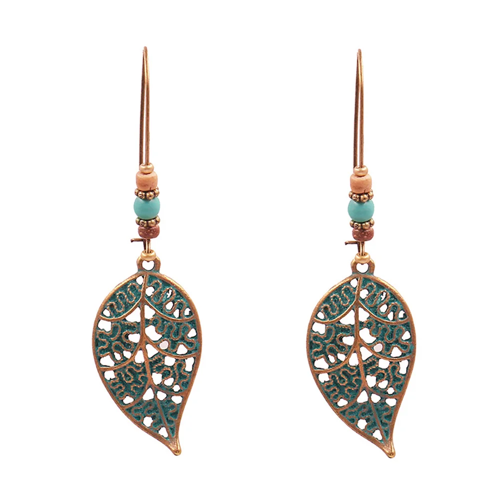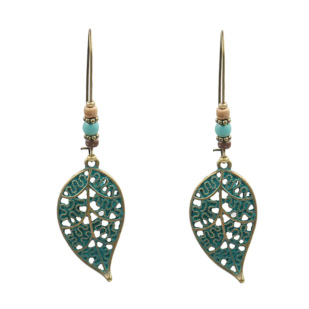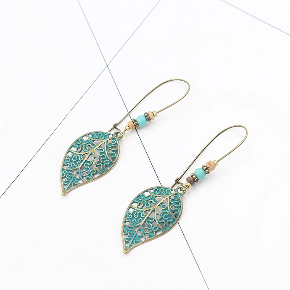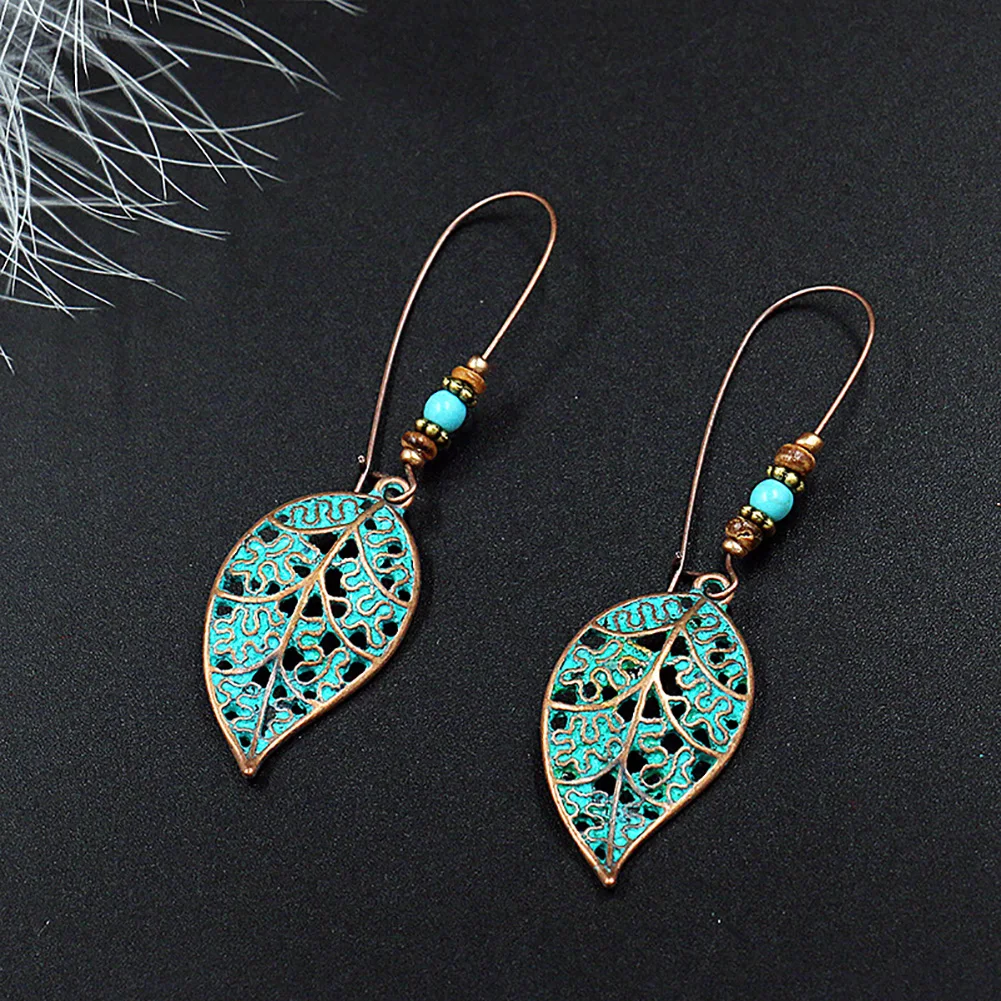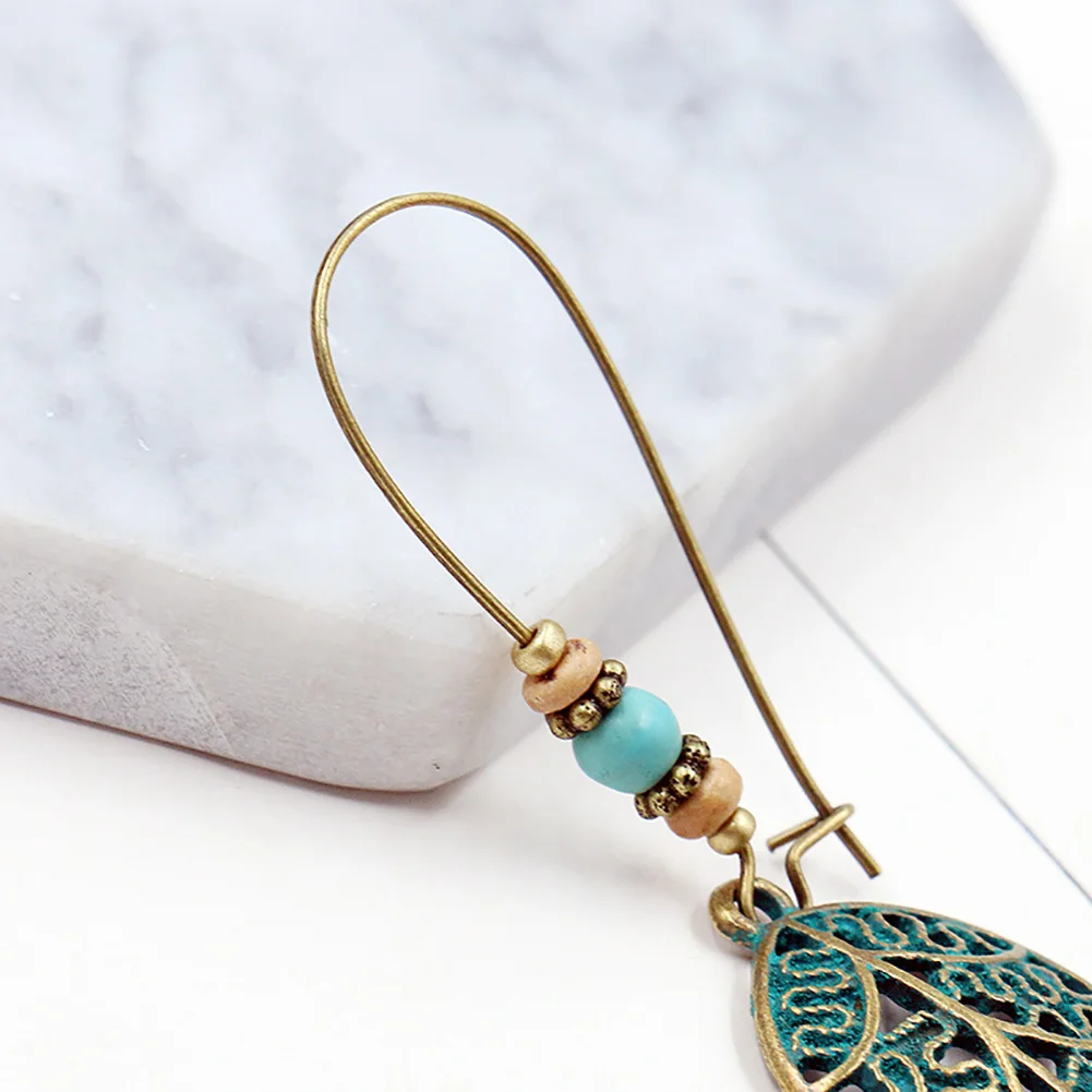 Женские серьги из искусственной бирюзы в стиле ретро подвеска в форме полого листочка