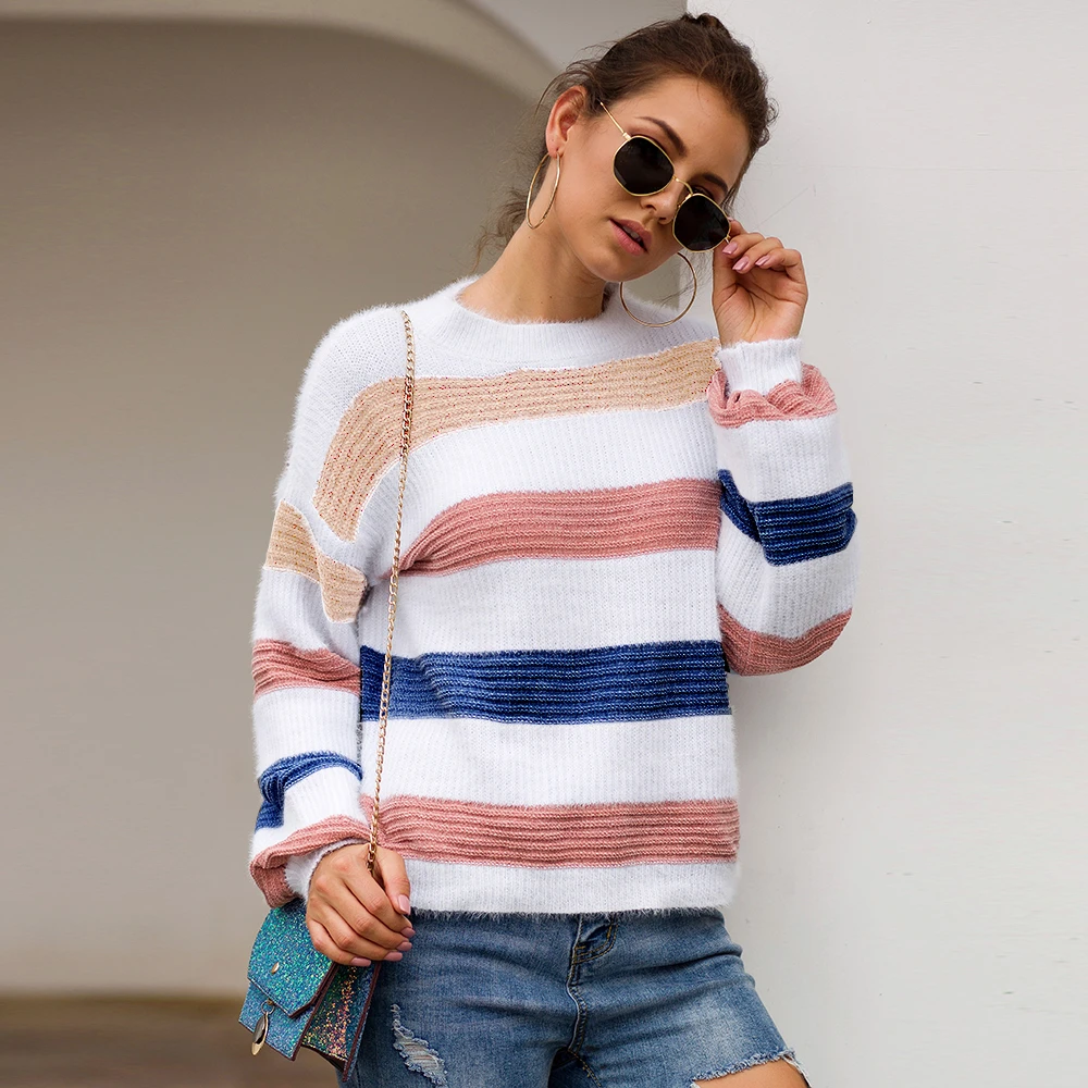 Rainbow Sweater Women Winter Clothes Pullovers Jumper Colorful Knitwear Casual Loose Autumn Pull Femme | Женская одежда