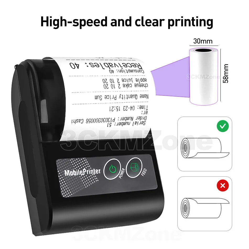 -С перезаряжаемой батареей 2600mAh 7,4 V, этот мобильный принтер может работать непрерывно до 10 часов-маленький размер и светильник, легко носить с собой в любом месте для работы, например, счет на такси, получение платы за управление, почтовая квитанция, ресторанный заказ и т. Д.