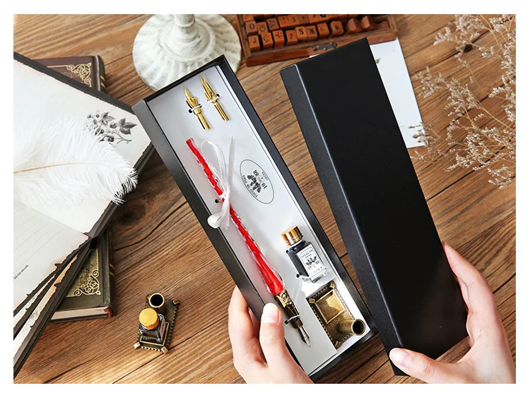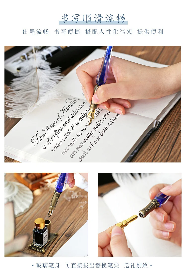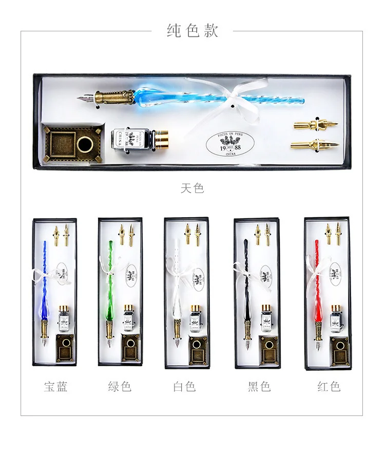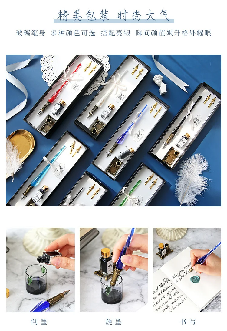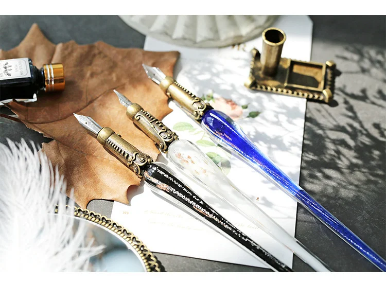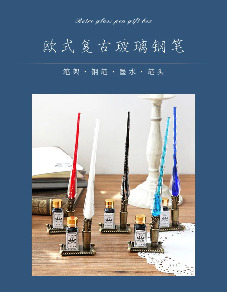 Ручка стеклянная в европейском стиле с чернилами и держателем для ручки |
