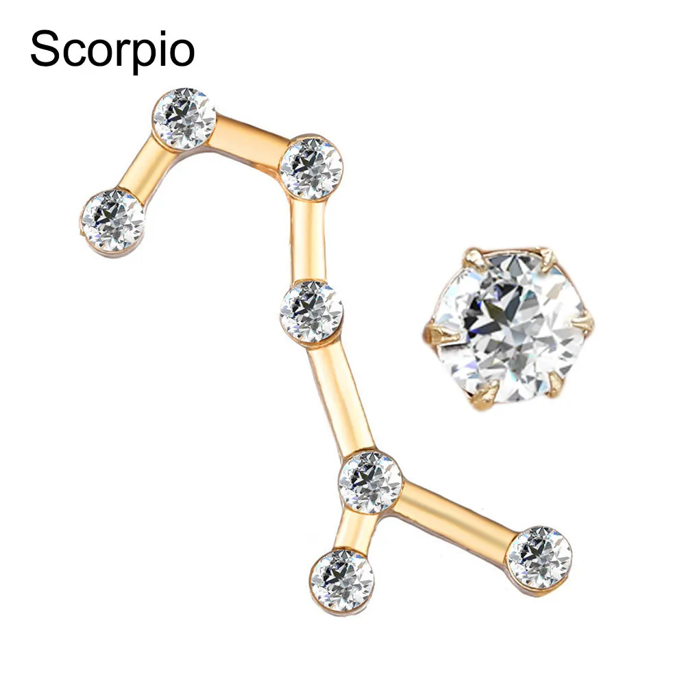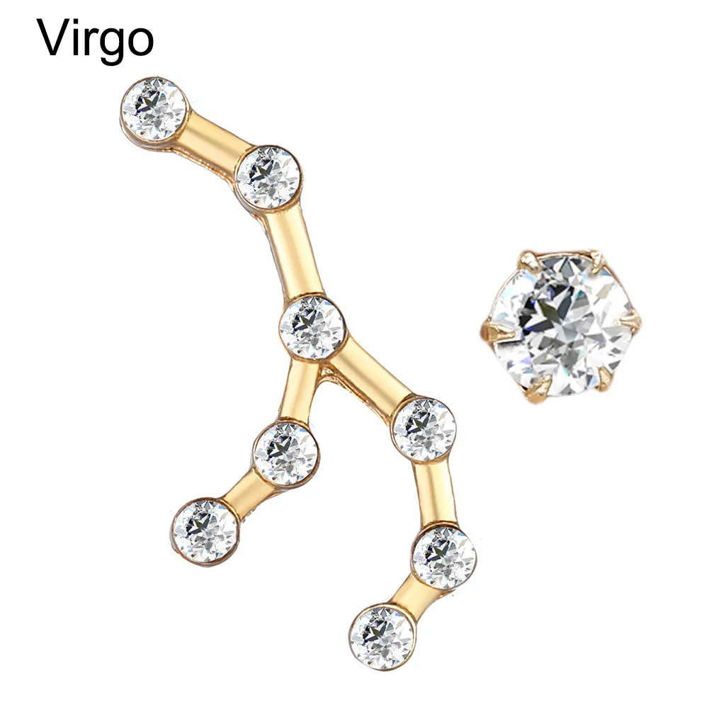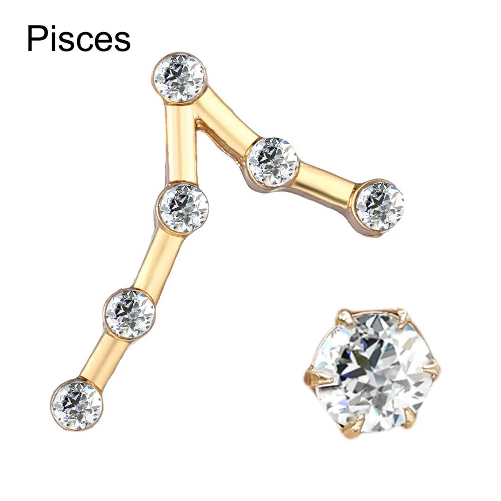 Модные креативные женские серьги 12 Созвездие горный Хрусталь очаровательные гвоздики серьги асимметрические ювелирные изделия женские аксессуары