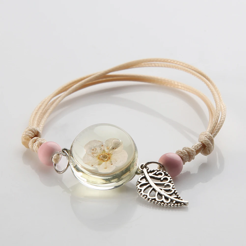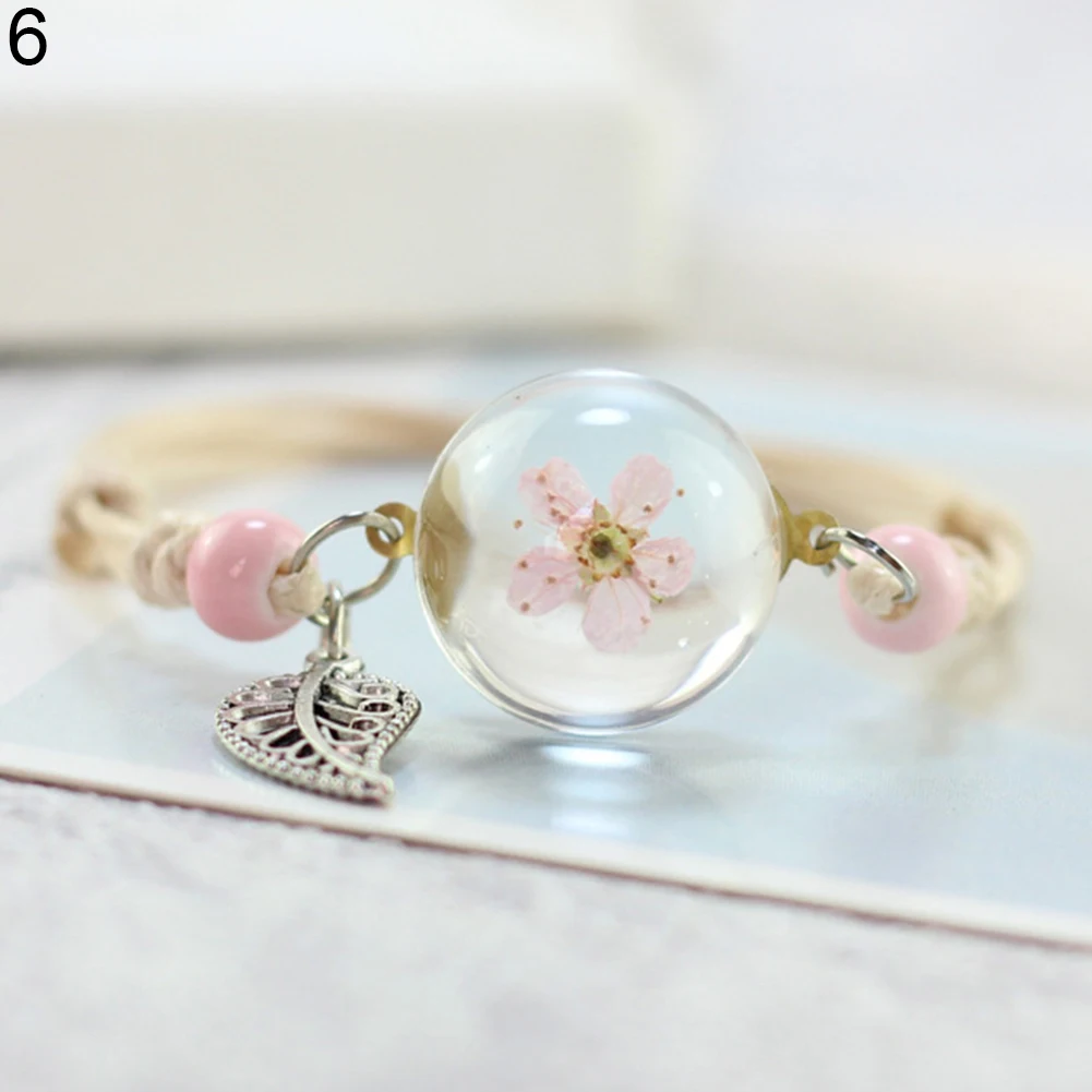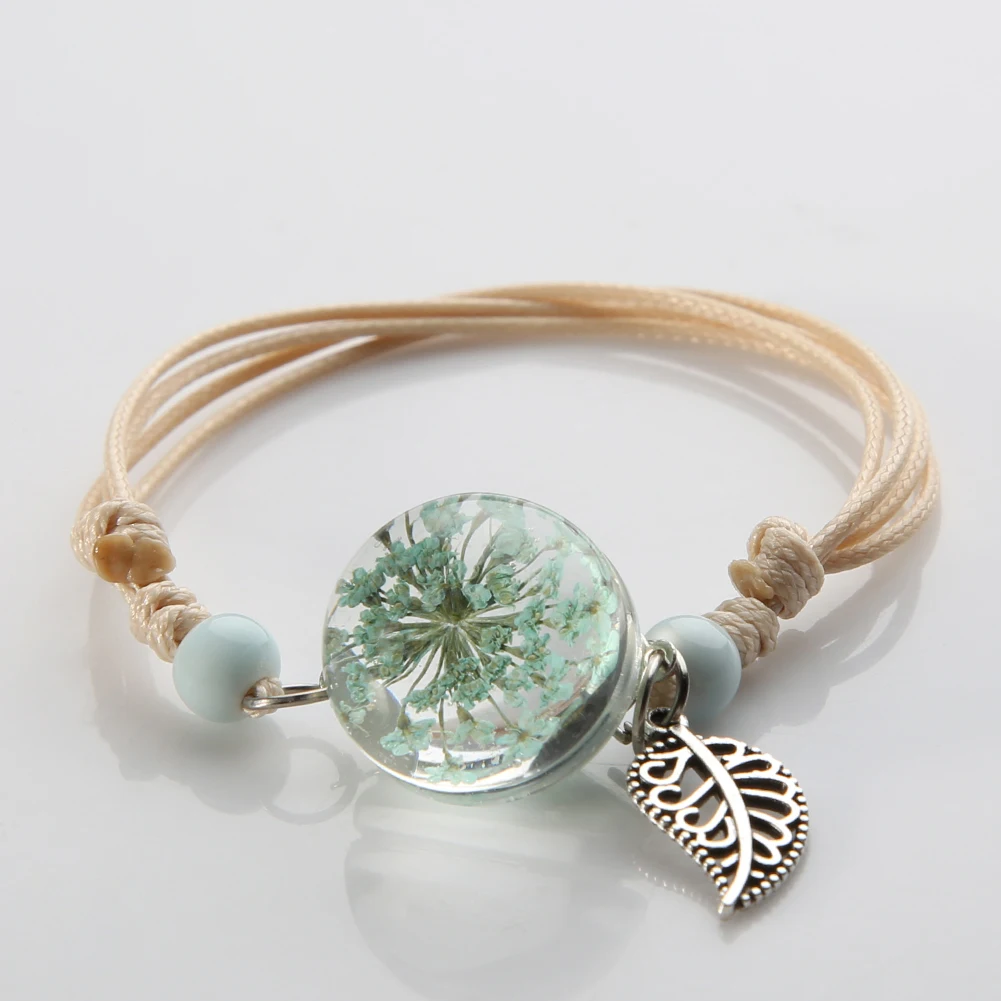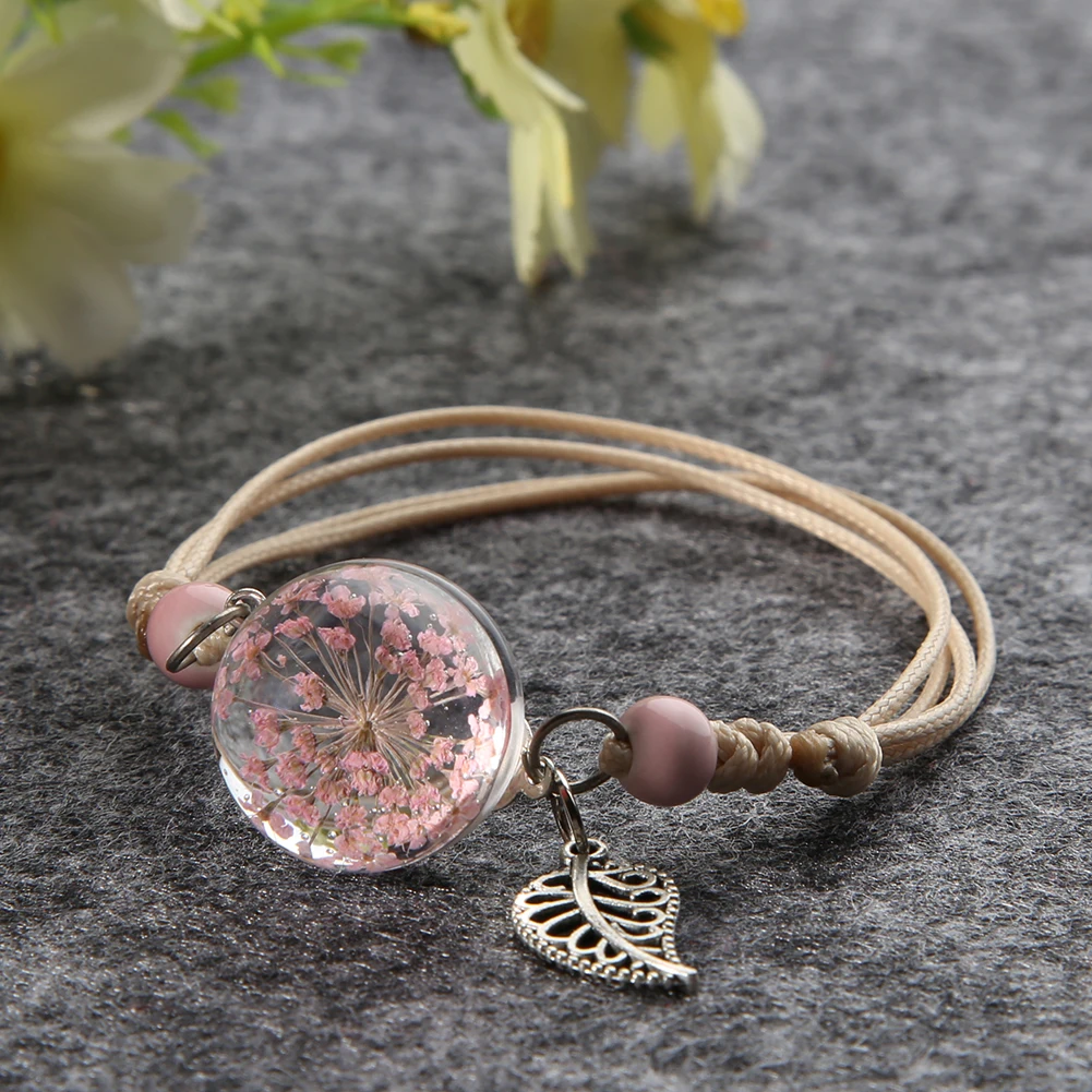 Мода Женщины сухой образец растения браслет стеклянный шар Одуванчик Gypsophila подарок подруги