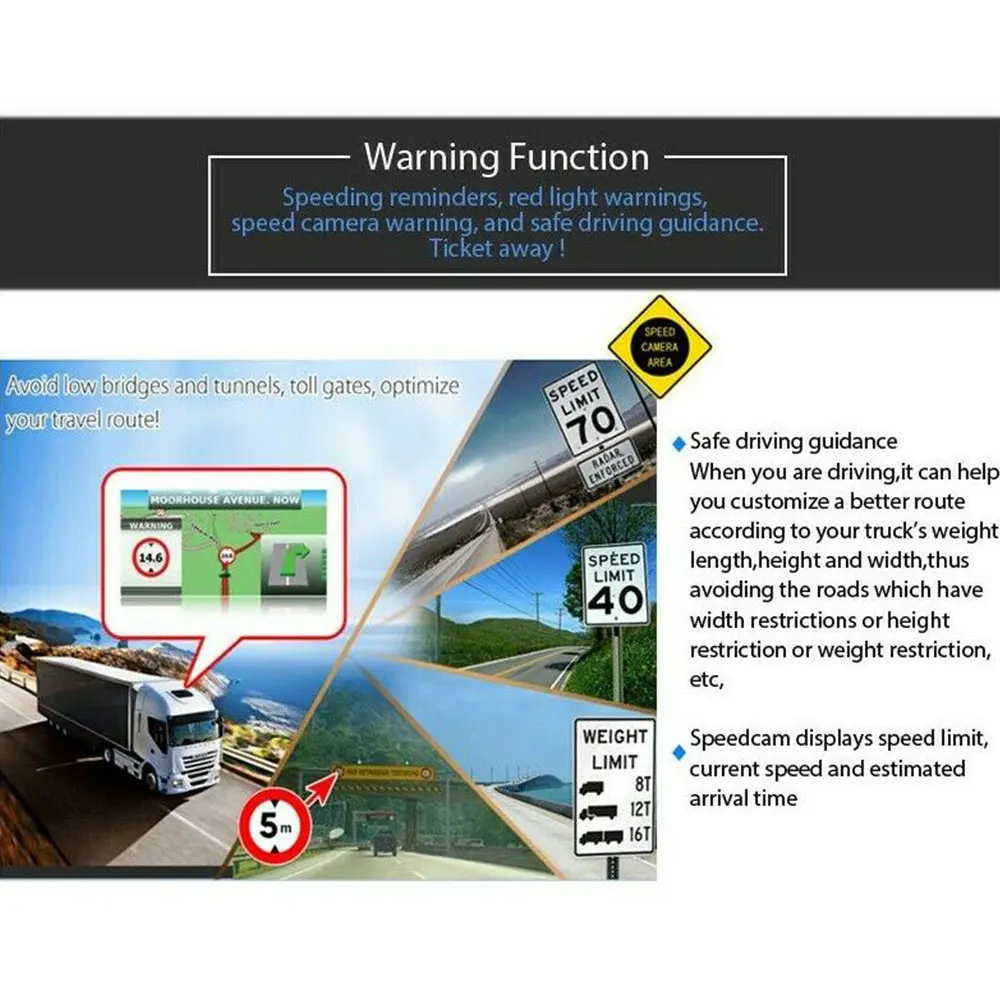 До тех пор, пока установка грузовика установлена, gps автоматически сообщит вам ограничения длины, ширины, высоты и веса.
