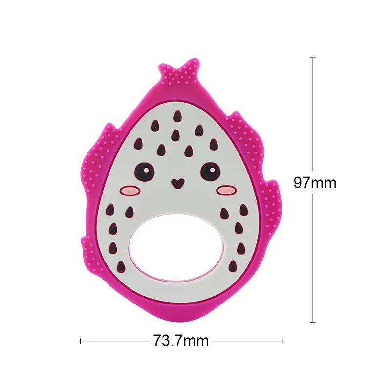-Силиконовый Прорезыватель для зубов фруктовый- Количество: 10 шт. Размер: 73,7*97 мм Материал: 1.100% пищевой силикон 2. Не содержит бисфенола-а 3. Без ФТАЛАТА 4. Нет руководства 5. Без ПВХ -Все продукты не содержат BPA, фталатов, свинца и ПВХ. Если вам нужен сертификат, пожалуйста, свяжитесь с нами и оставьте сообщение по электронной почте. -Новые продукты должны быть промыты теплой водой перед использованием, могут быть использованы после охлаждения, и должны быть очищены после каждого использования. -Легко чистить. Рекомендуется дезинфицировать салфетки для соски. -Пожалуйста, Стирайте перед использованием, пожалуйста, не ставьте изделие на детей без присмотра!
