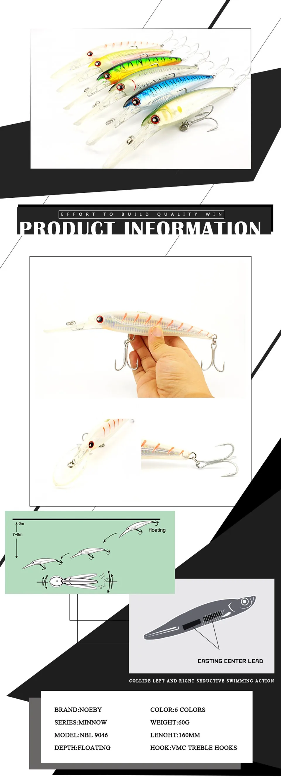 NOEBY Minnow приманки 140 мм/44 г плавающие 0-7 М рыболовные приманки VMC Крючки Isca искусственные Para Pesca рыболовные снасти
