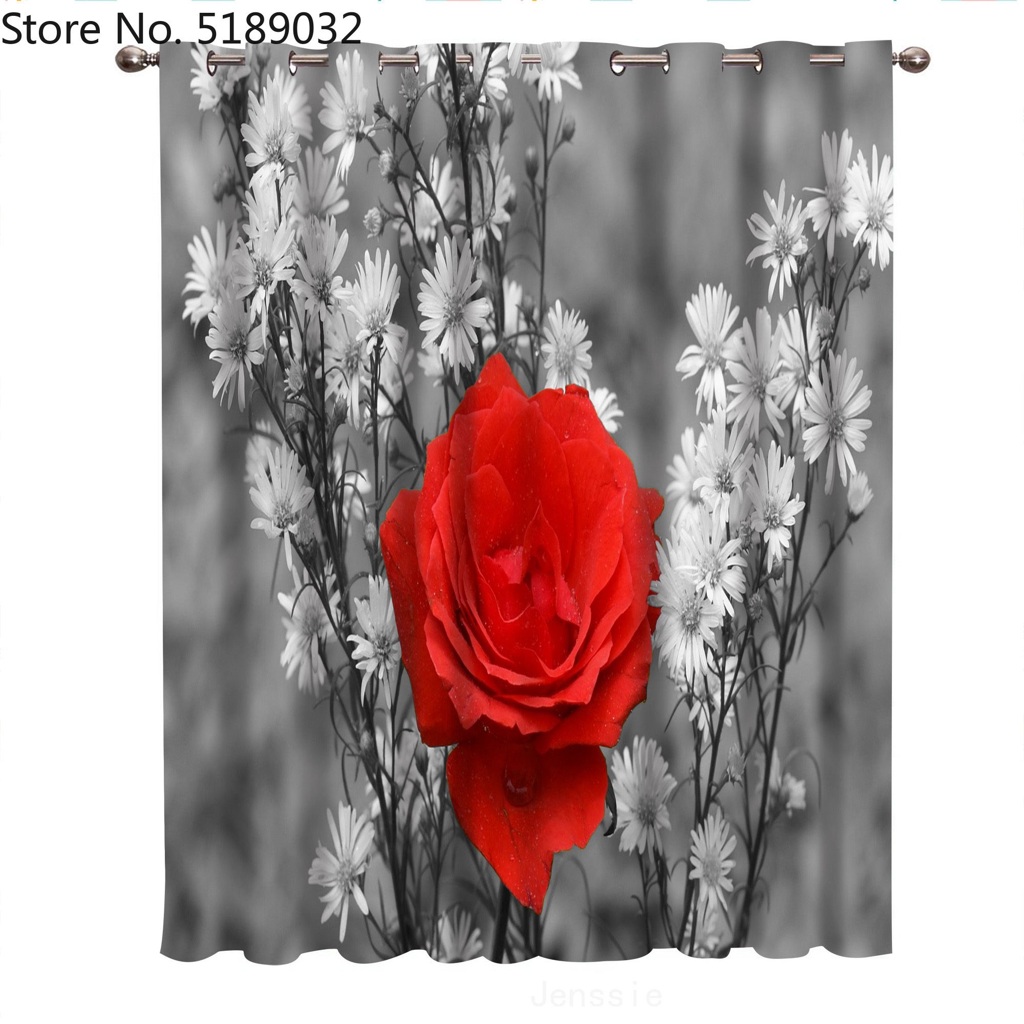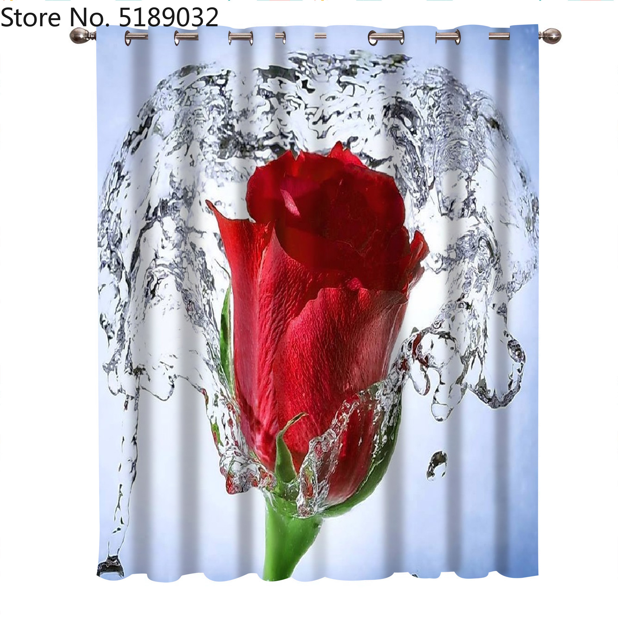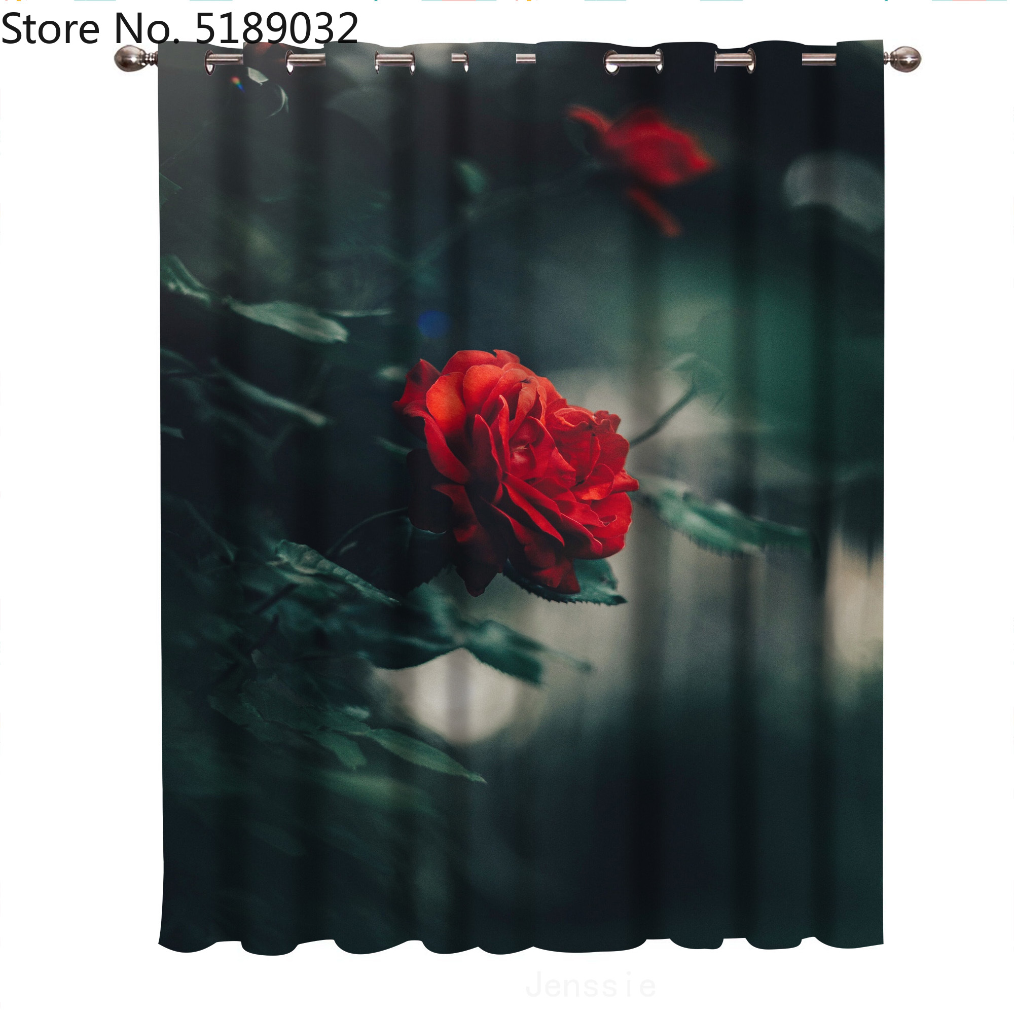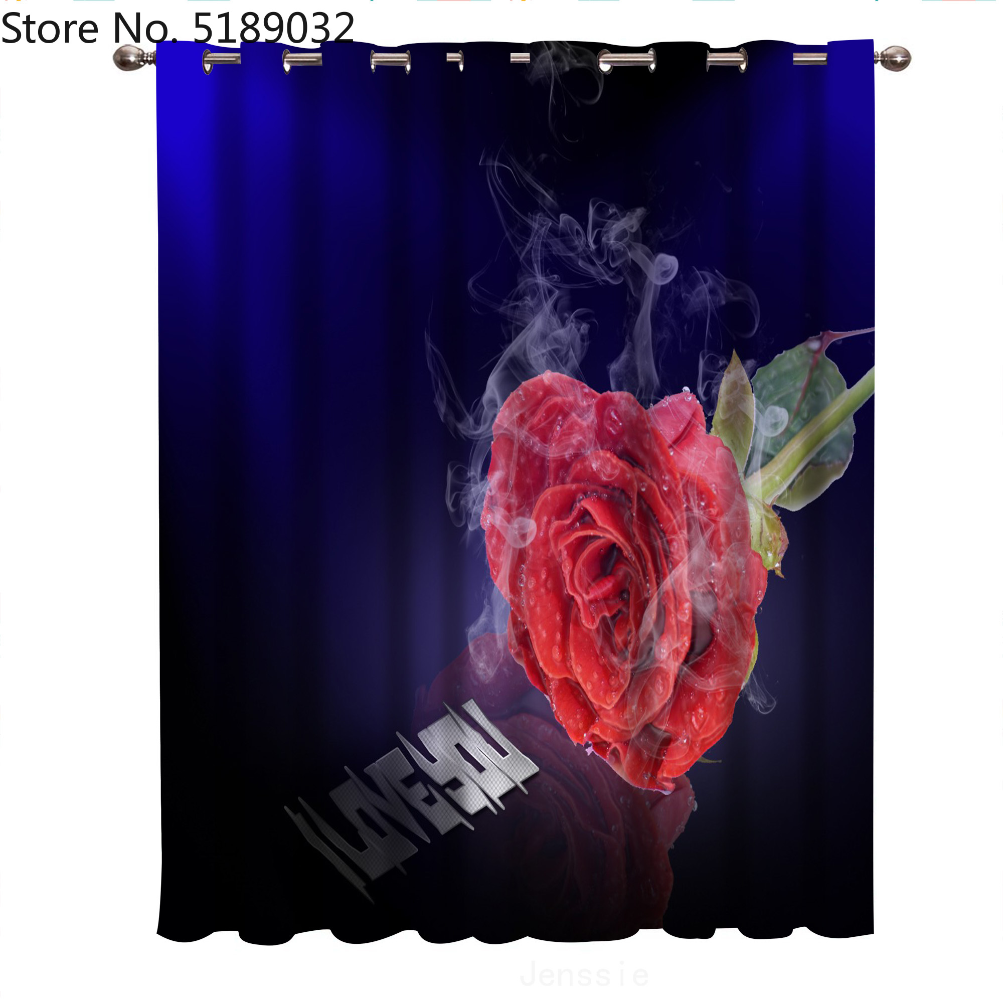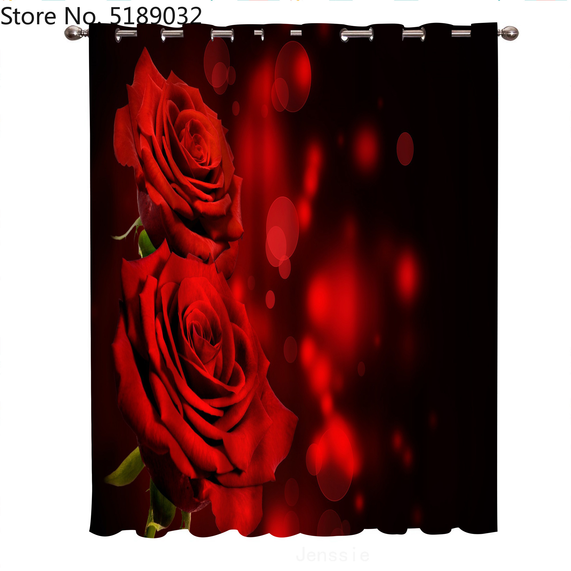 Роза, занавеска на окно, 2 панели, цветок, занавески на окно, День Святого Валентина, украшение, занавеска для влюбленных, декор для спальни, затемненная занавеска