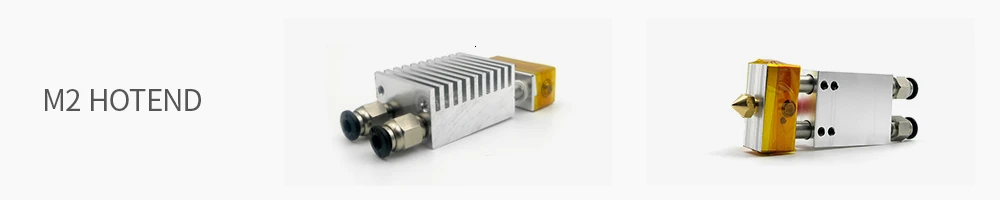 М2HOTENDИмеет две нити входных каналов и одну насадку. Материал Смешанный в hotend. Подходит для печати объектов с разными цветами. Зависит от патентной технологии ZONESTARАвтоматический смешивающий цветной двигатель(Функция программного обеспечения на плате управления), один цвет gcode файл может быть автоматически изменен на обесцвечиваемый объект, легко сделать красочный напечатанный объект. Но M2 hotend не подходит для смешивания 2 разных типов нитей.