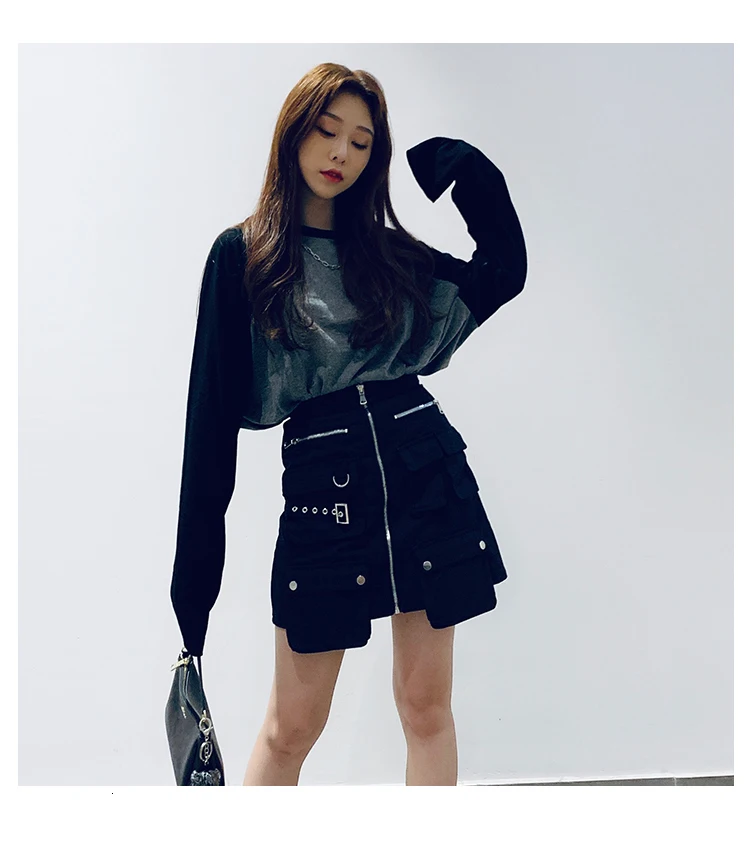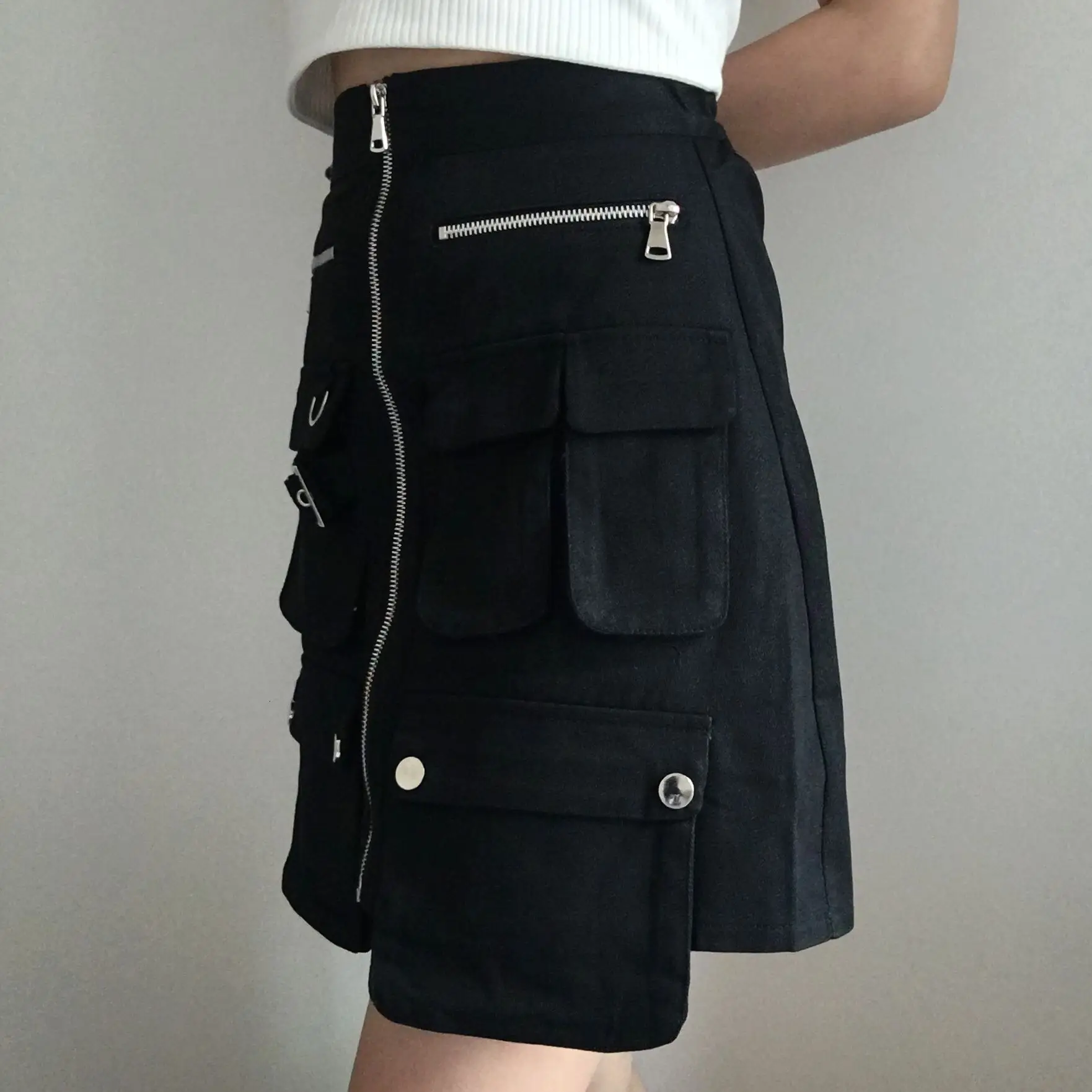 Готическая Черная Женская юбка на молнии с карманом и пряжкой женские панк юбки
