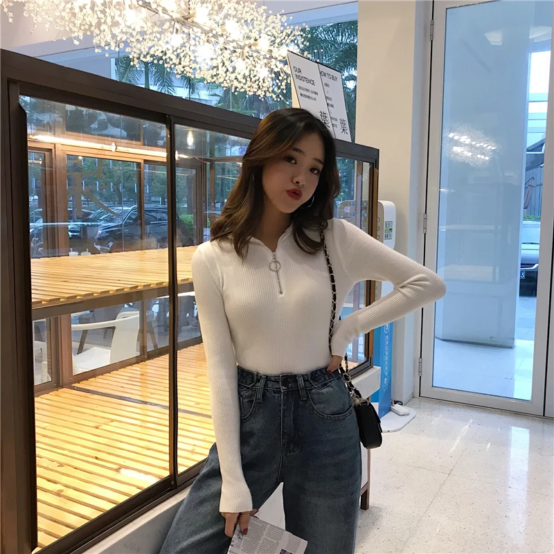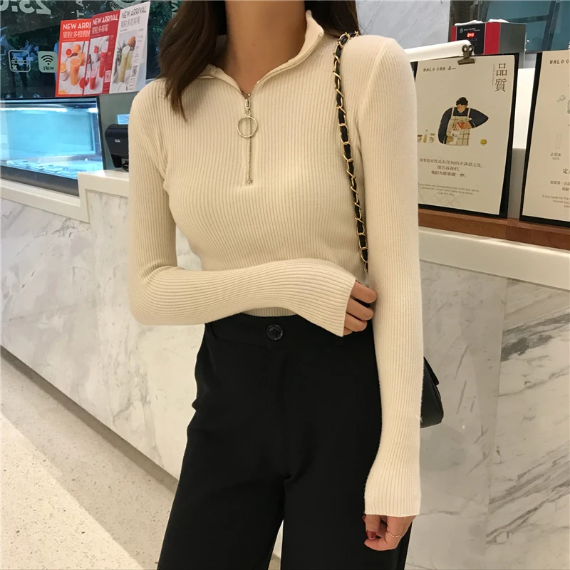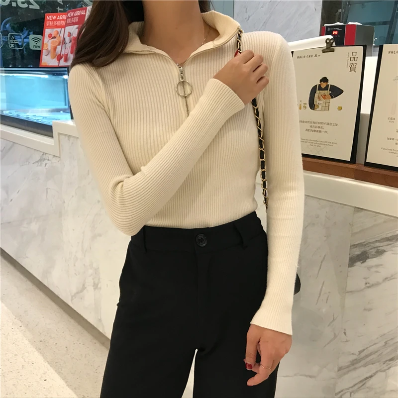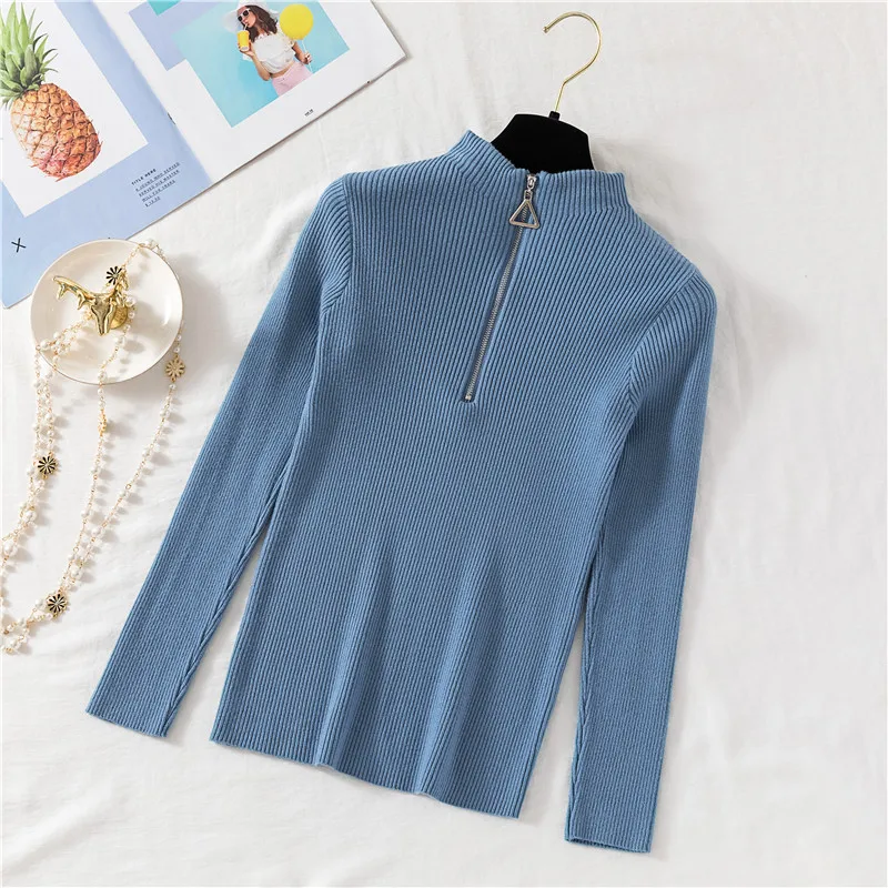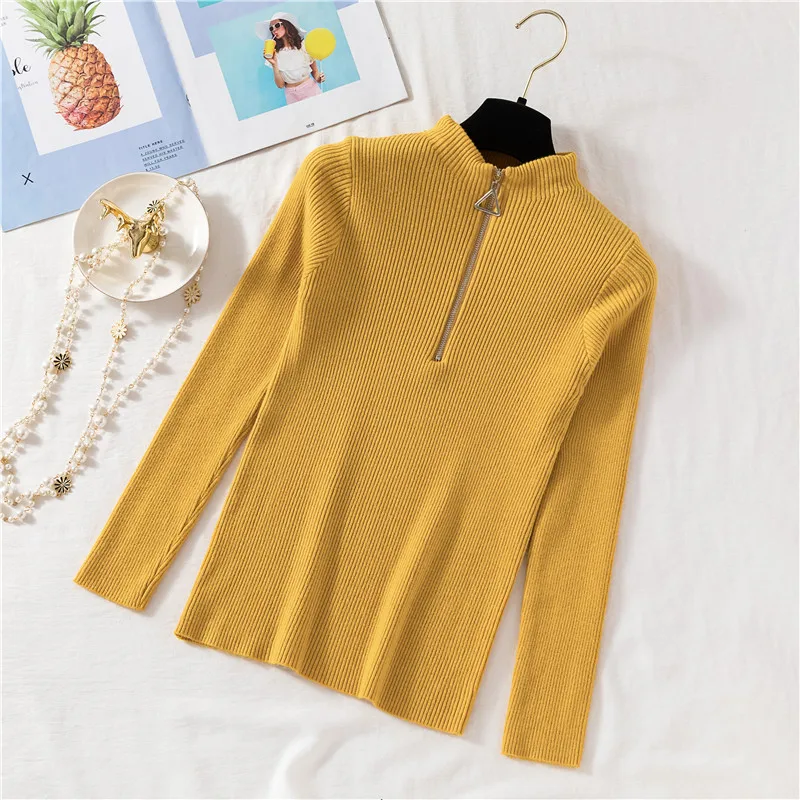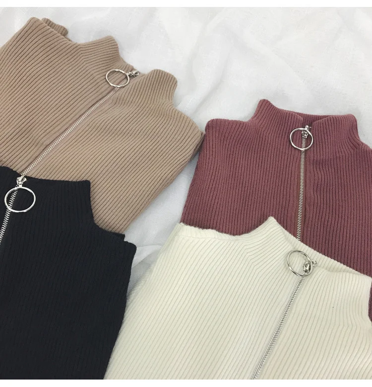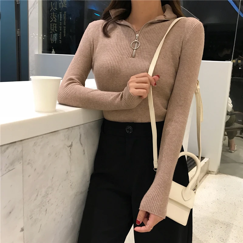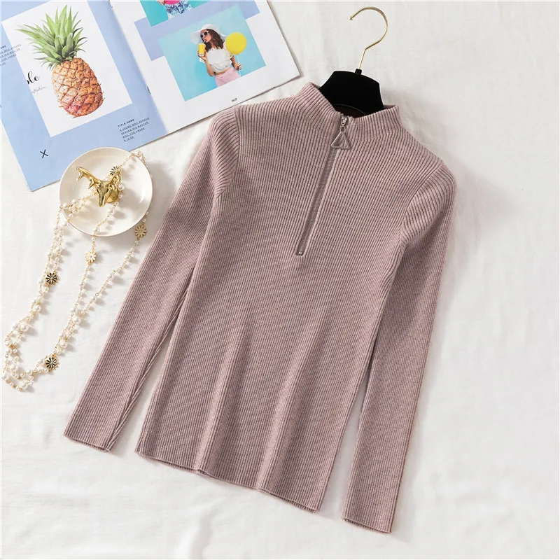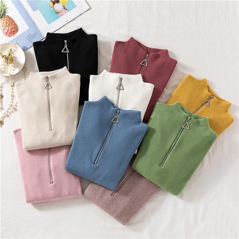 2022 пуловеры на молнии вязаный свитер с воротником хомут женский осенне-зимний