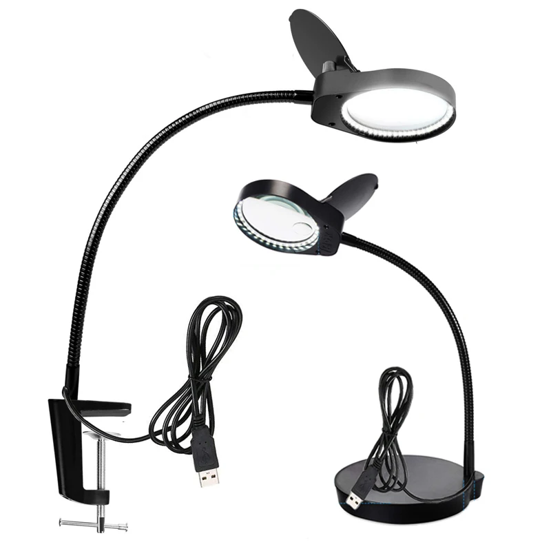 2 в 1 Настольная лупа с лампой 8x15x или 3x/10x светодиодный светильник для чтения с зажимом, регулируемое увеличительное стекло с светильник для задачи, ремесла, хобби, ремонт, верстак, черный