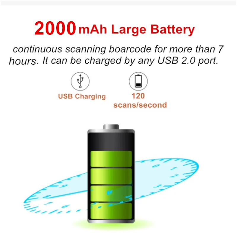 3. Аккумулятор большой емкости: встроенный литий-ионный аккумулятор емкостью 1800 мАч, а также Самая передовая технология с низким энергопотреблением процессора означает непрерывное сканирование до 100 000 раз при полной зарядке