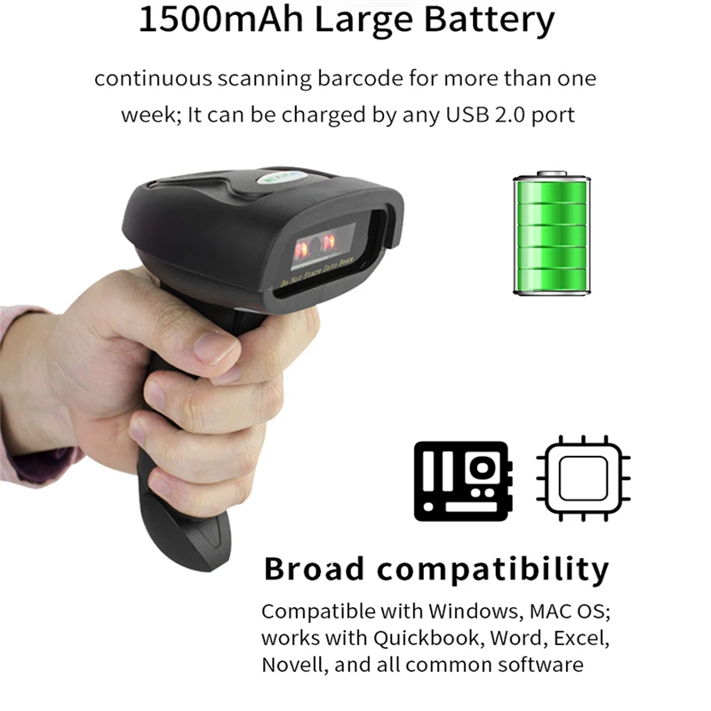 2. Два режима работы: NETUM беспроводной сканер штрих-кода встроенный в память 256кб, более 2600 кодов, чтение без подключения;