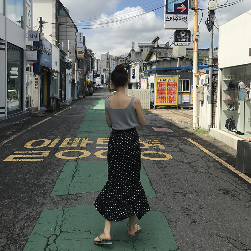 Дизайнерские юбки женские летние японский дизайн темперамент удобные с оборками Русалка маленькая черная юбка в горошек Высокая талия AQ663