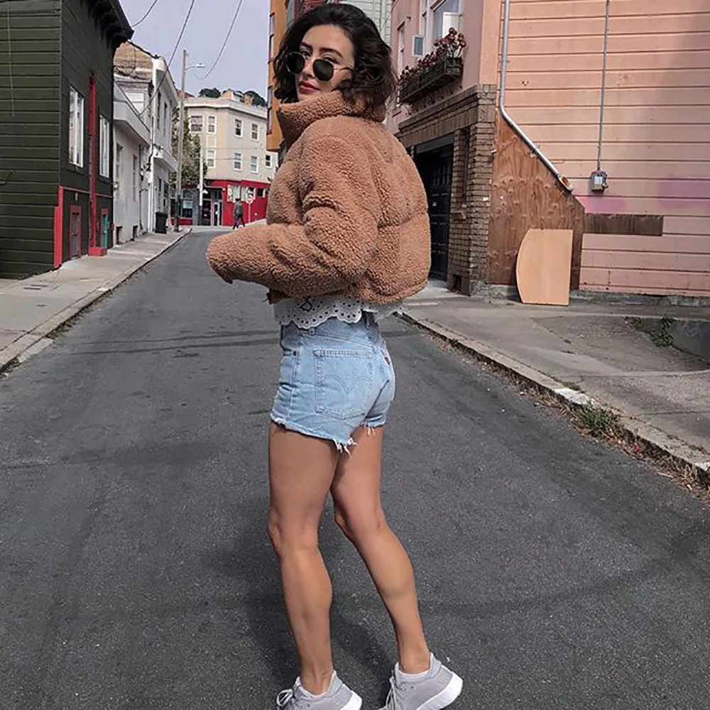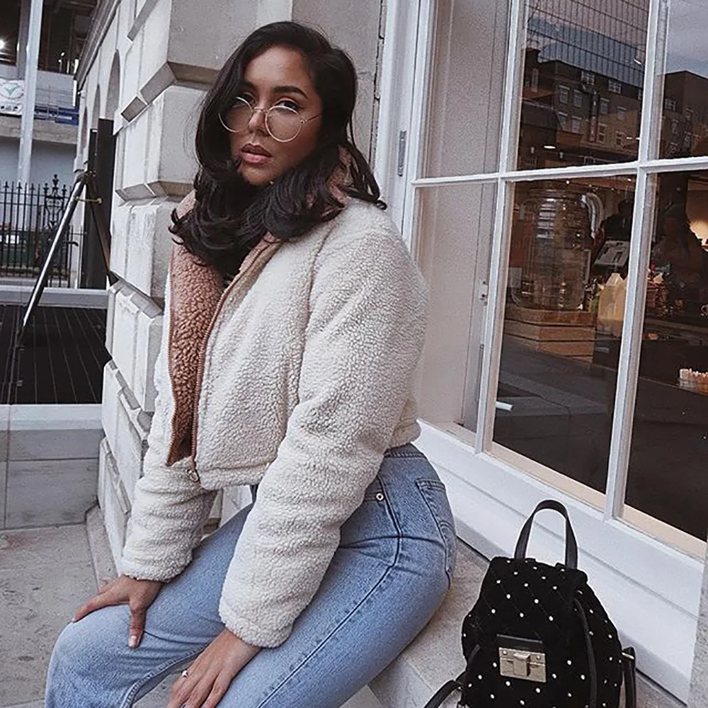 Зимняя Толстая флисовая Свободная куртка Бомбер Пальто Повседневное