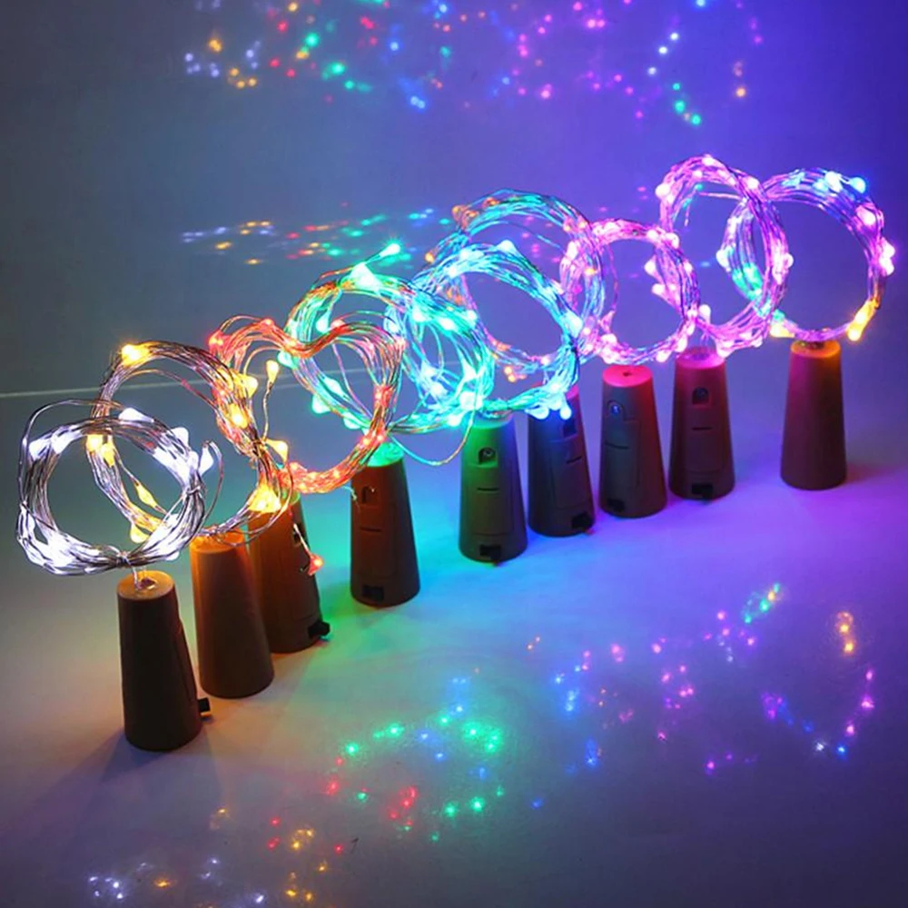 Каждый из пробкового дерева крепится к тонкой серебряной проволоки, которые могут быть легко манипулировать с 15 маленький светодиодный свет.