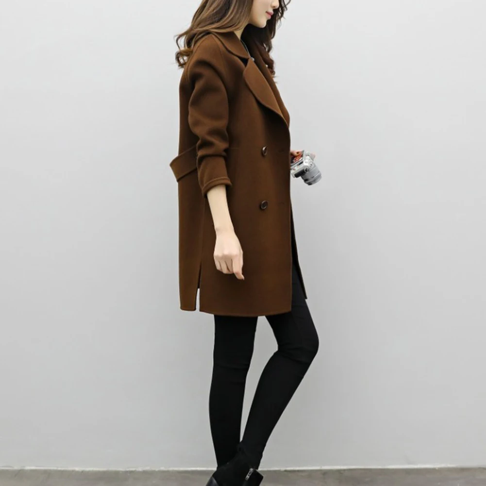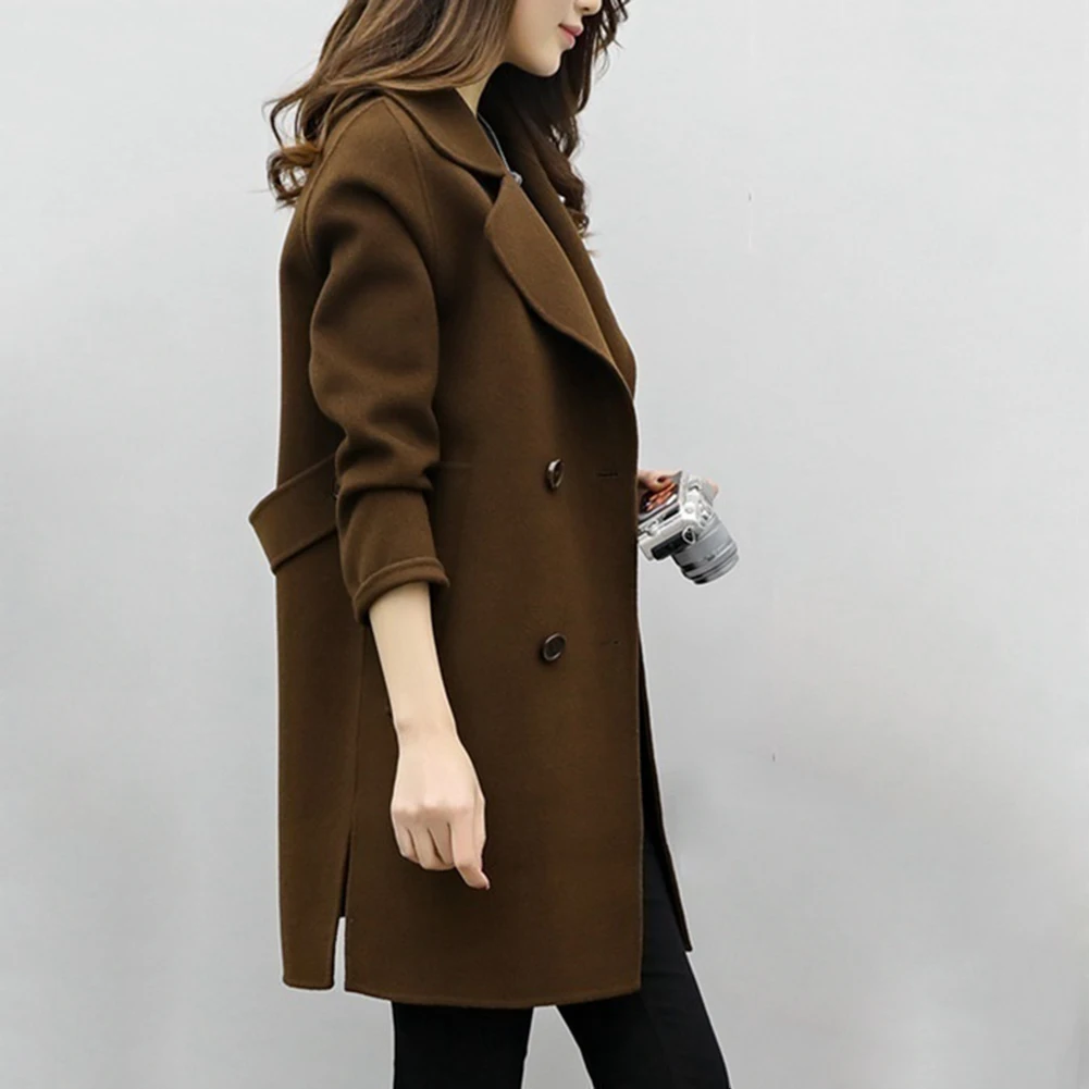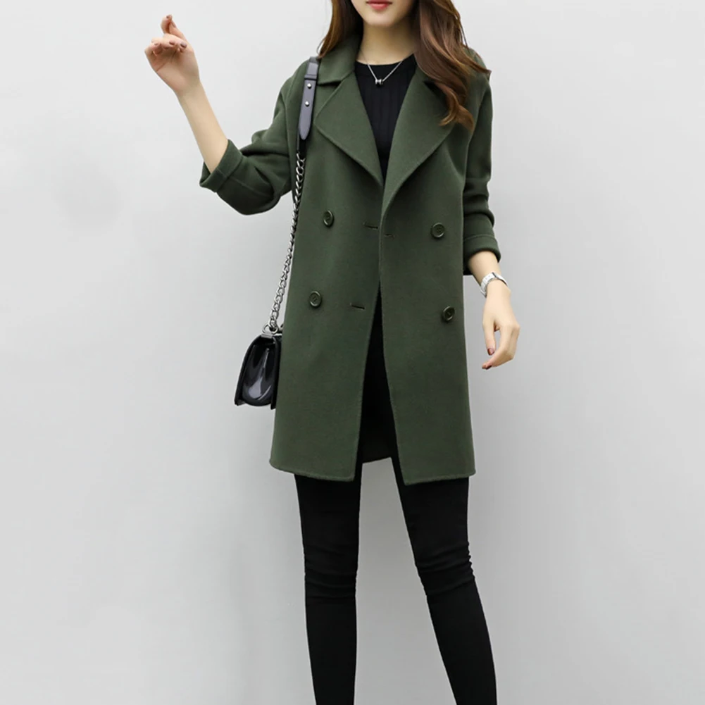 Женское теплое длинное пальто размера плюс, облегающее шерстяное пальто с лацканами, осенне-зимняя кашемировая верхняя одежда