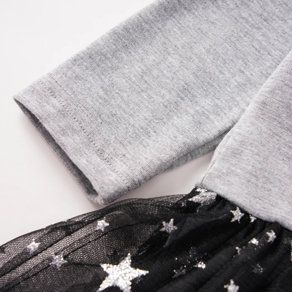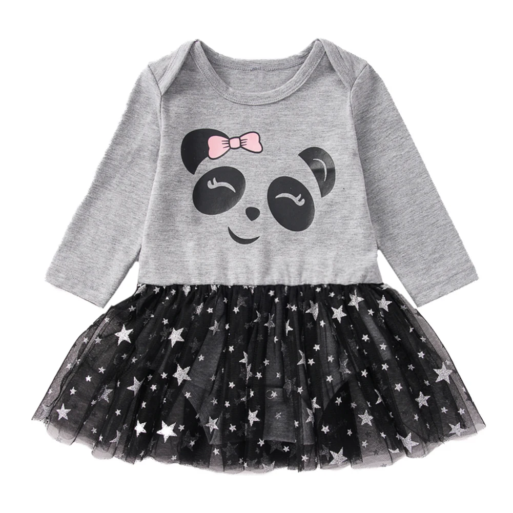 Модное детское платье для маленьких девочек Сетчатое платье в стиле пэчворк с длинными рукавами, круглым вырезом и принтом панды