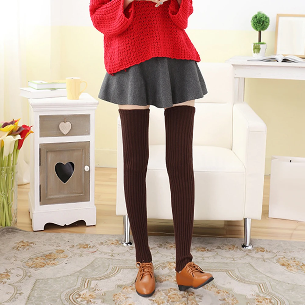 Модные зимние эластичные однотонные вязаные гетры, леггинсы, женские сапоги