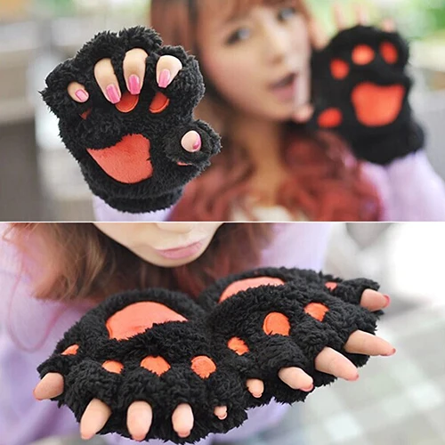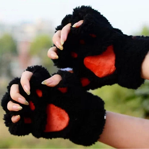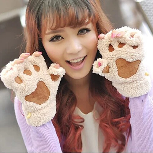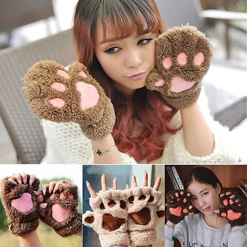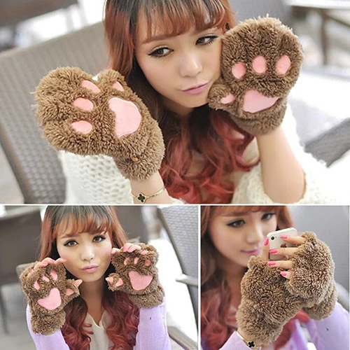 Женская пушистая лапа плюшевая перчатка зимние наполовину покрытые мягкие варежки