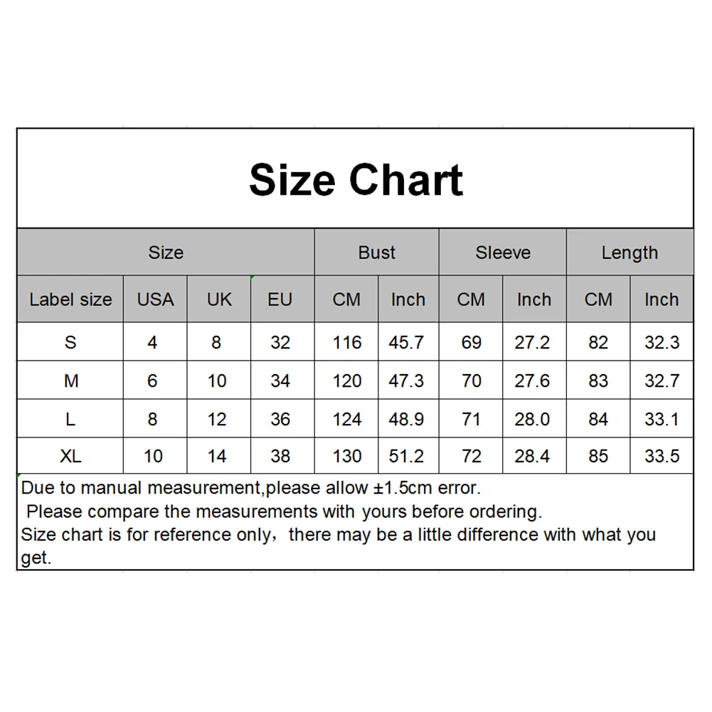 [Наш Размер S] Обхват груди: 116 см/45,7 дюйма, длина рукава: 69 см/27,2 дюйма, длина: 82 см/32,3 дюйма (прибл.)