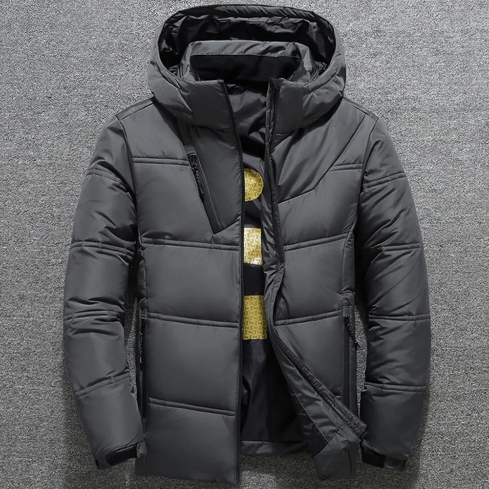 Плотный пуховик защитит вас от мороза в холодные дни.