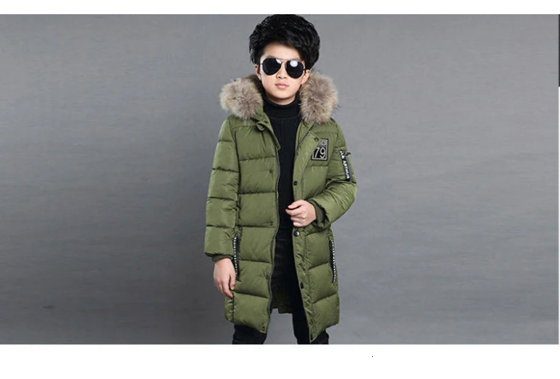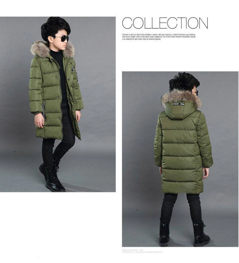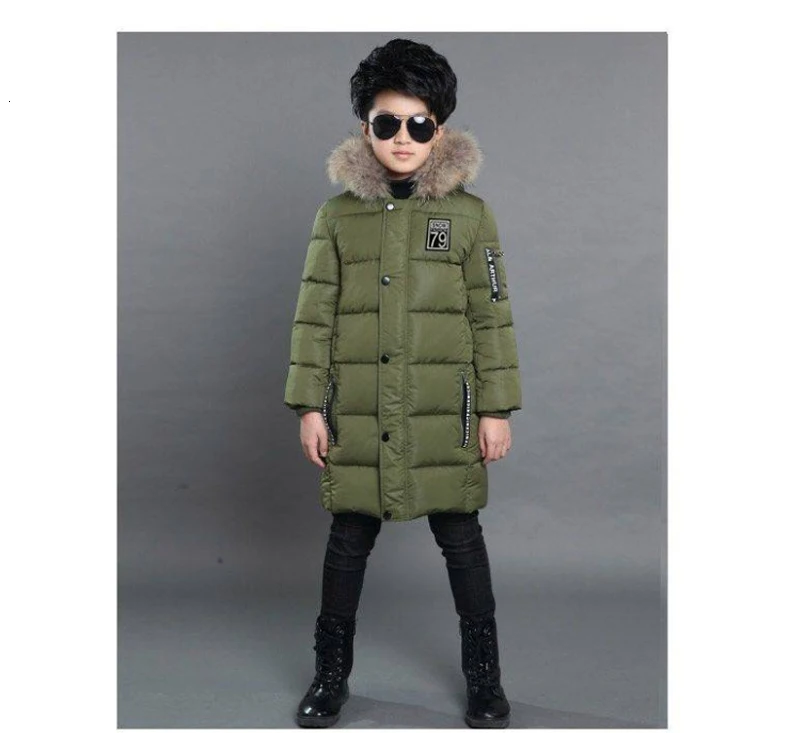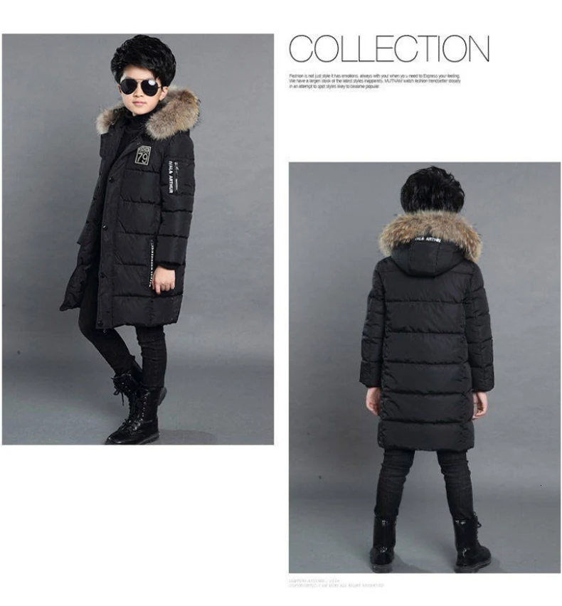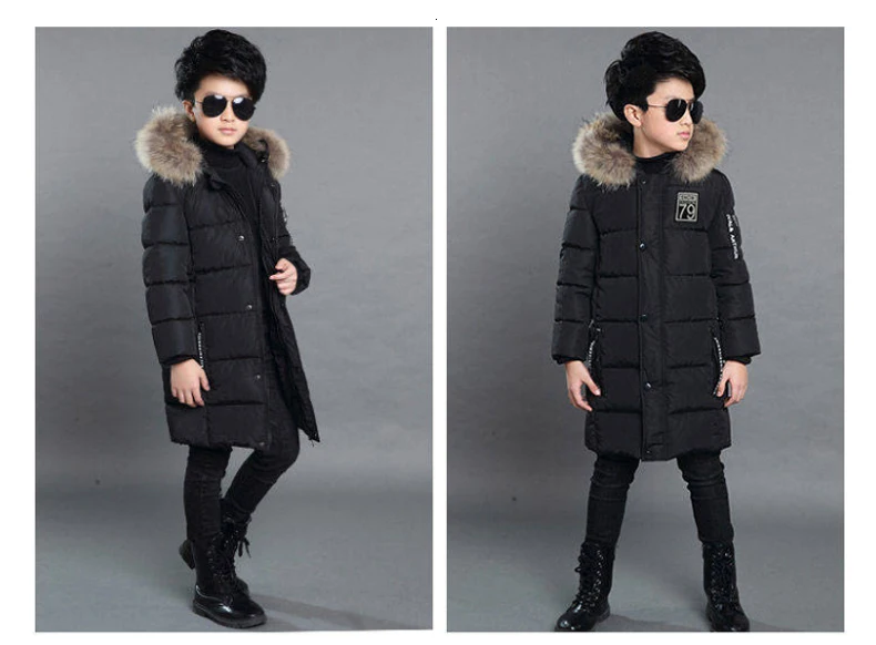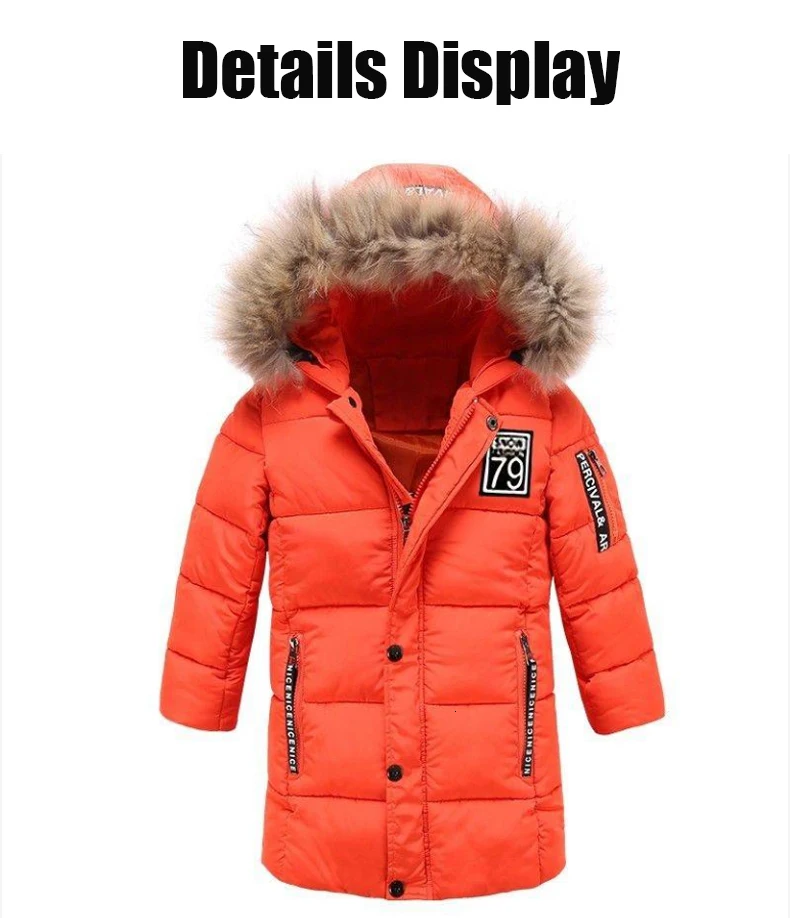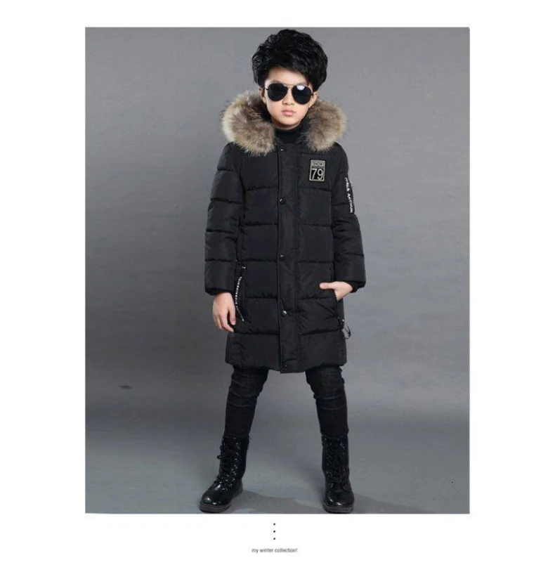 Зимнее пальто для мальчиков Теплая стеганая парка куртка с меховым капюшоном
