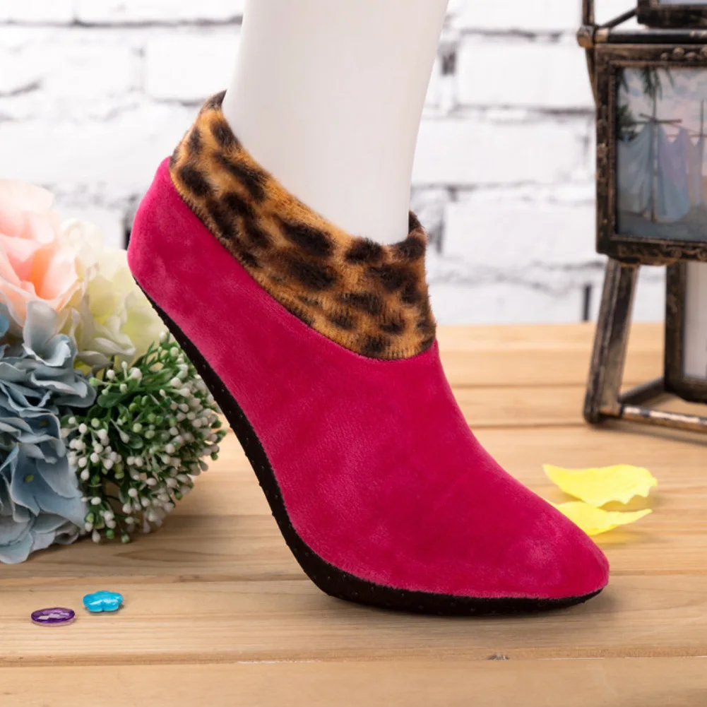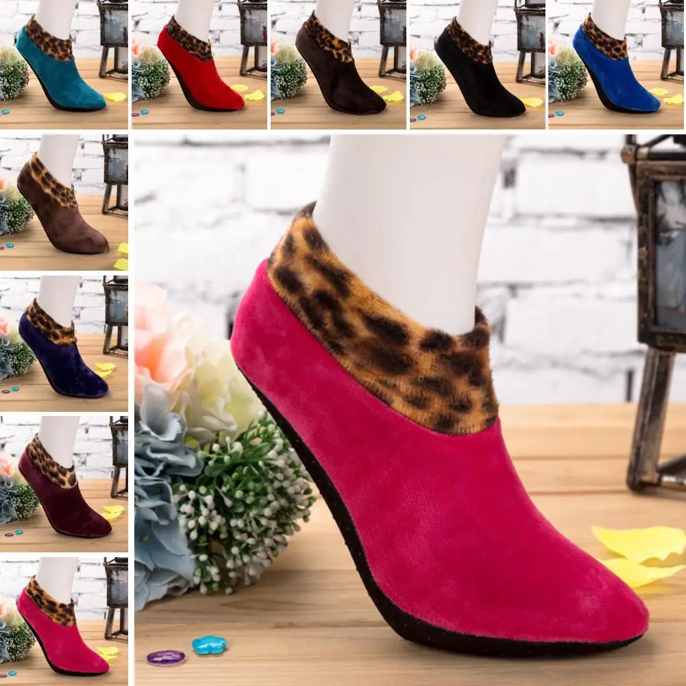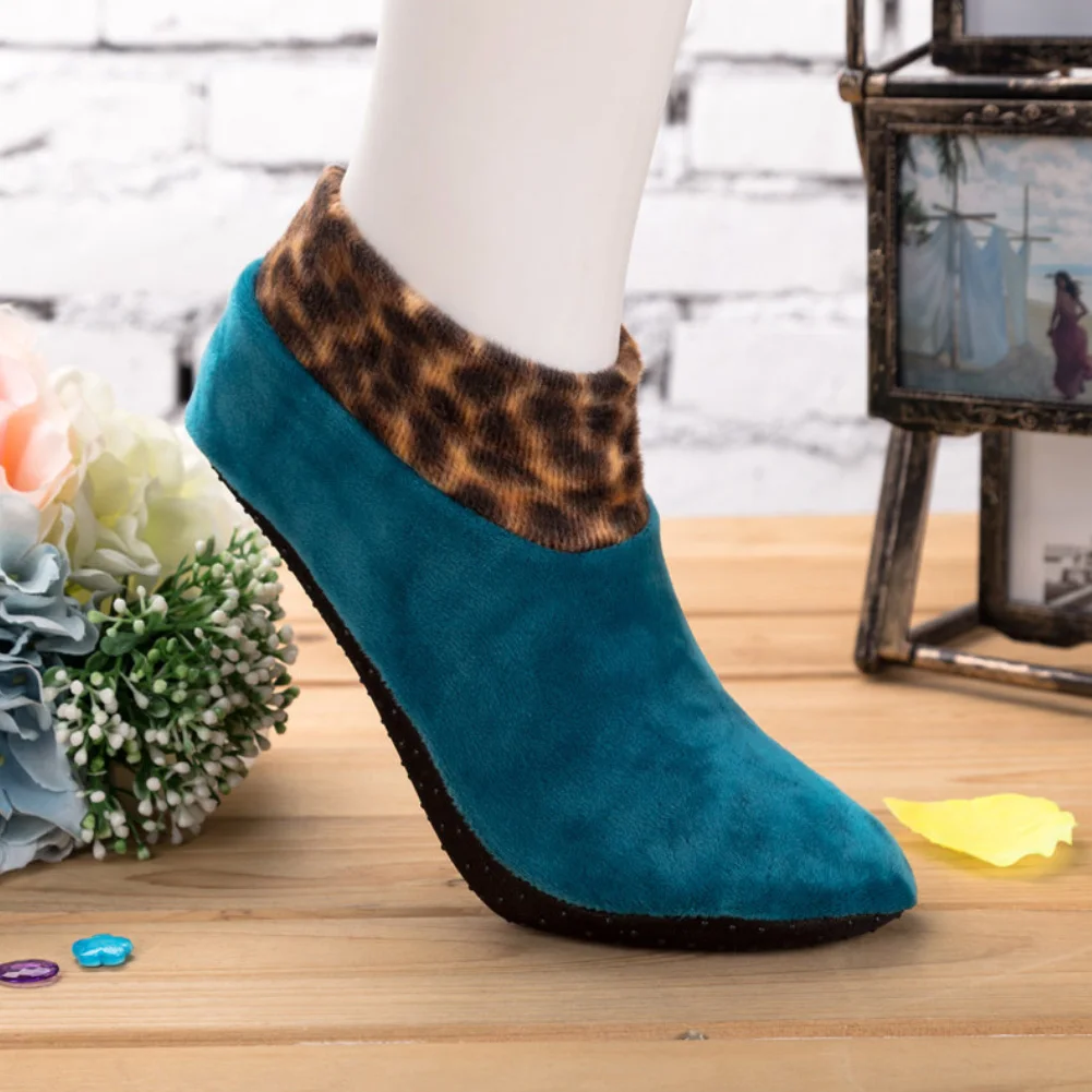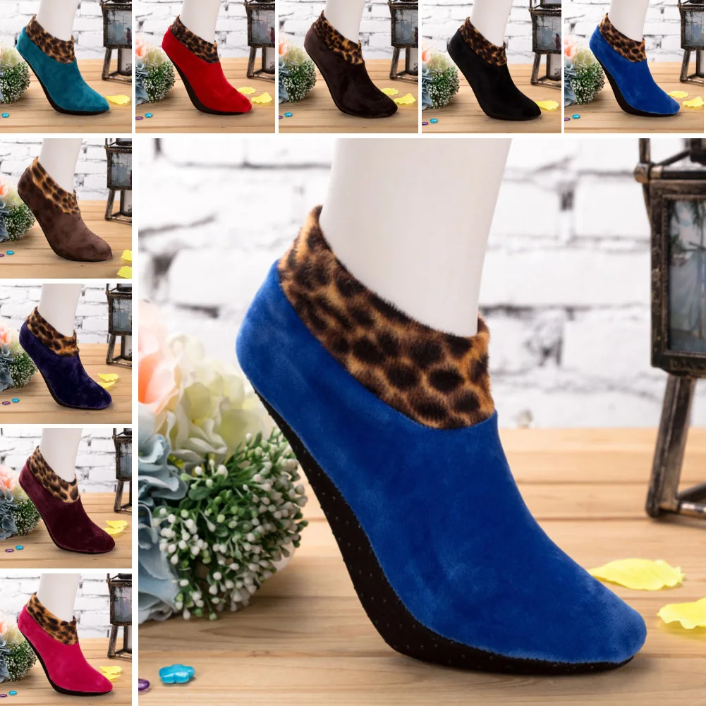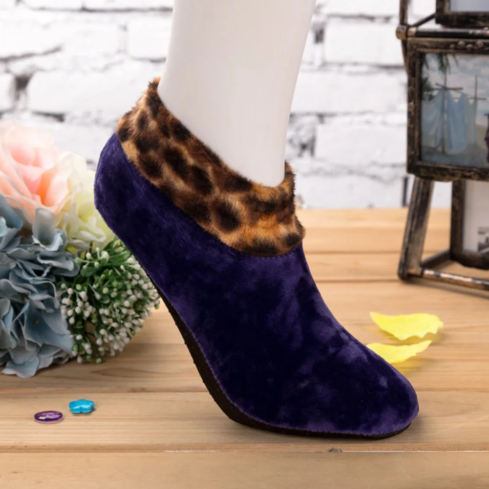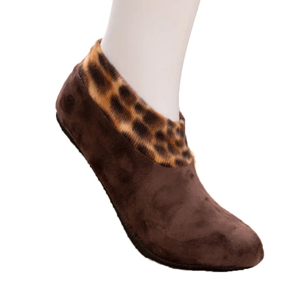 Women Winter Leopard Cuff Soft-soled Anti Slip Indoor Thick Slippers Floor Socks